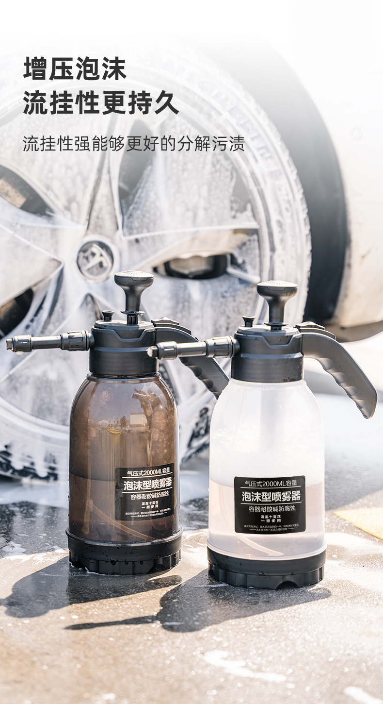 • 商品名称:双喷头气压泡沫型雾化喷头喷雾器 2000毫升多用洗车喷壶--白色