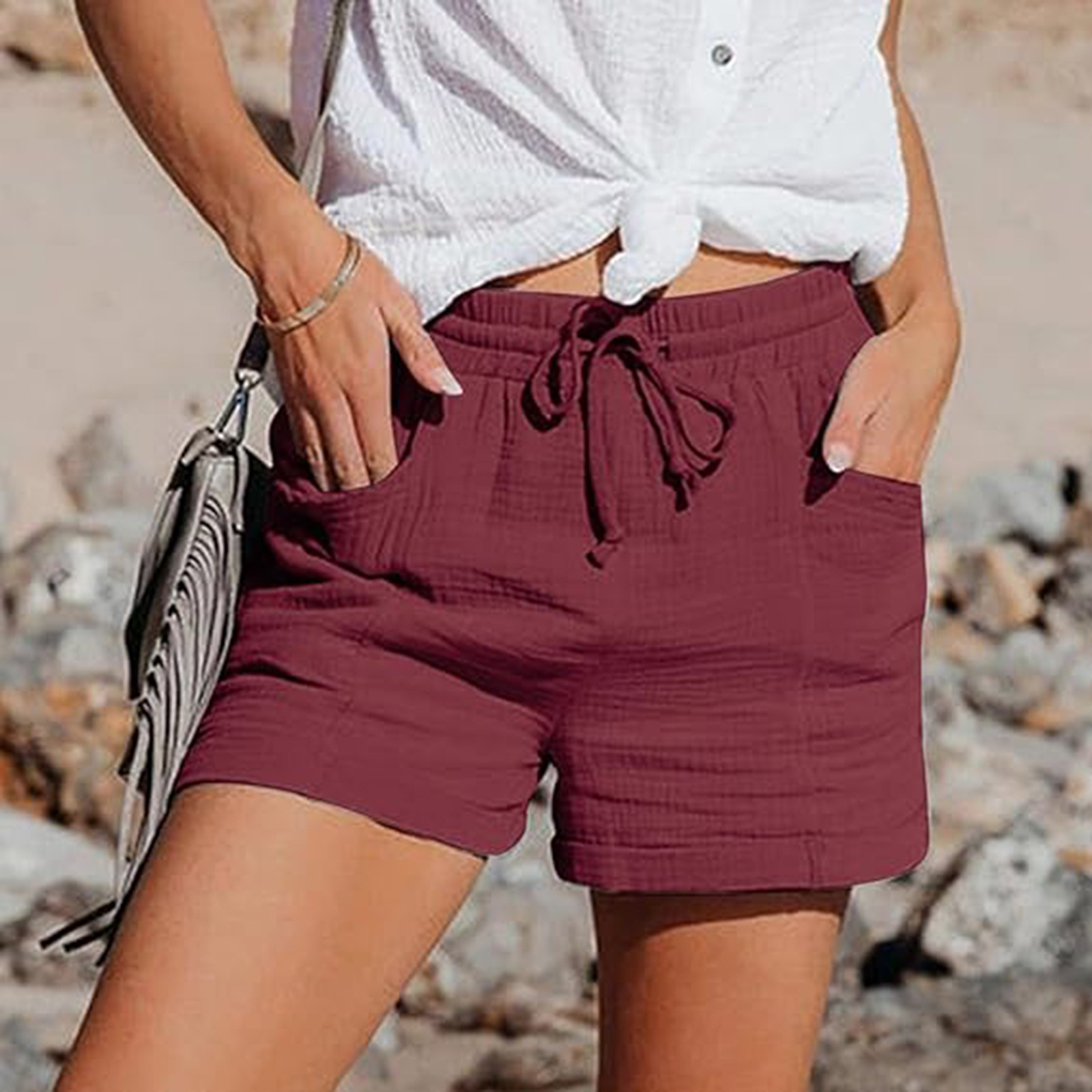 2025 유럽과 미국의 국경 간 여름 새로운 여성 의류 아마존은 높은 허리 레이스 업 느슨한 넓은 다리 반바지 여성을 기원합니다스토어 가기