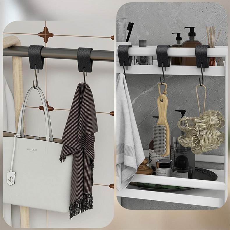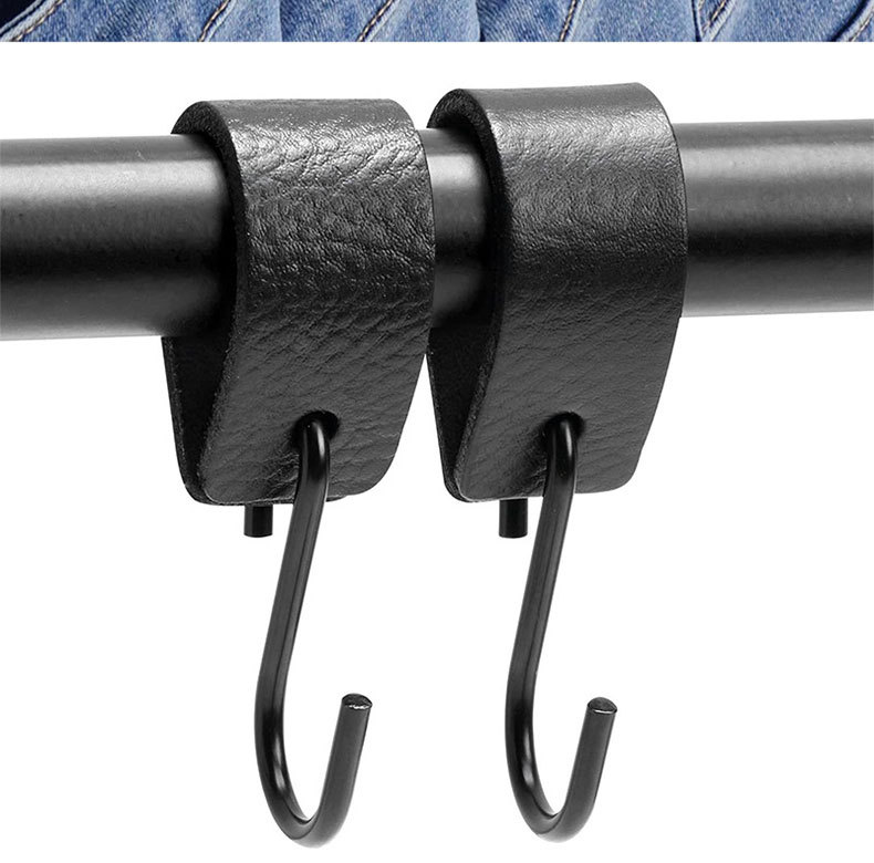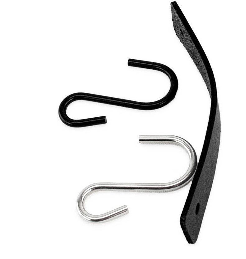 • PU 가죽 블랙 + 실버 메탈 S 후크(2개 팩)
