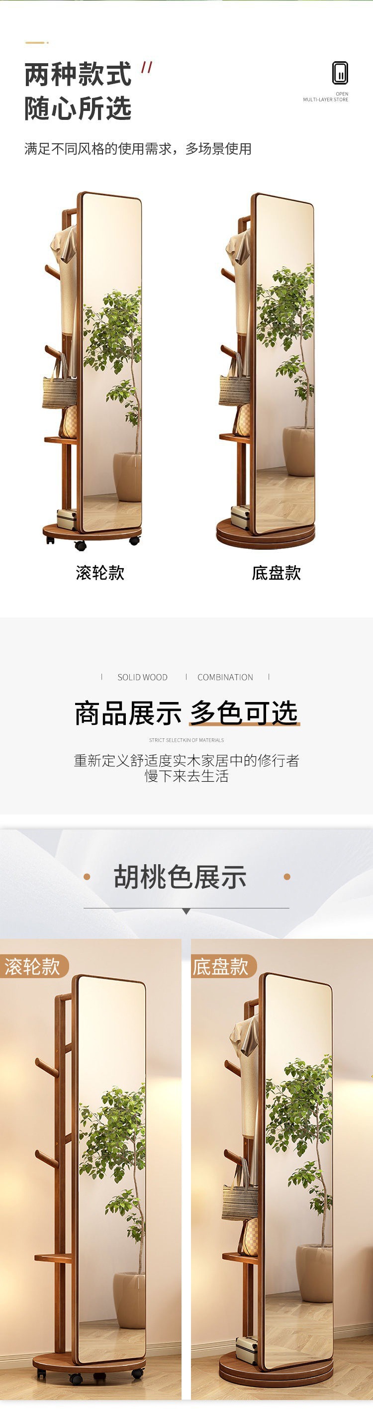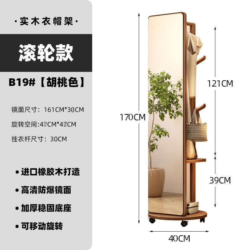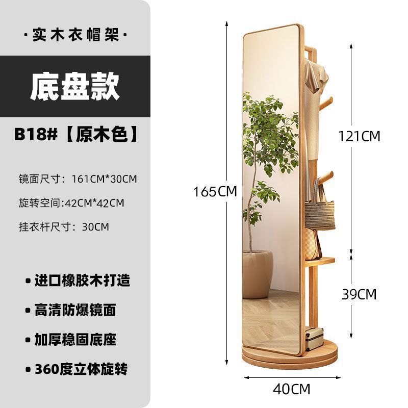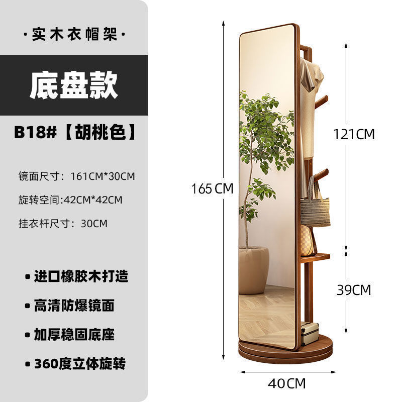 단단한 나무 드레싱 거울 전체 길이 거울 가구 회전 가능한 옷걸이 바닥 거울 보관 랙 침실 피팅스토어 가기