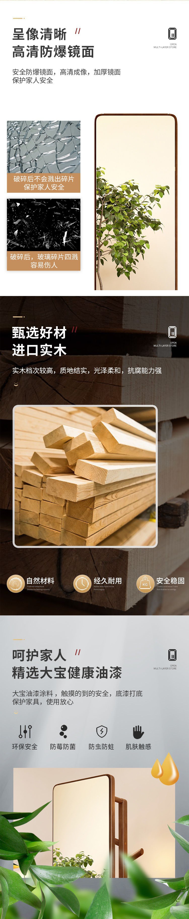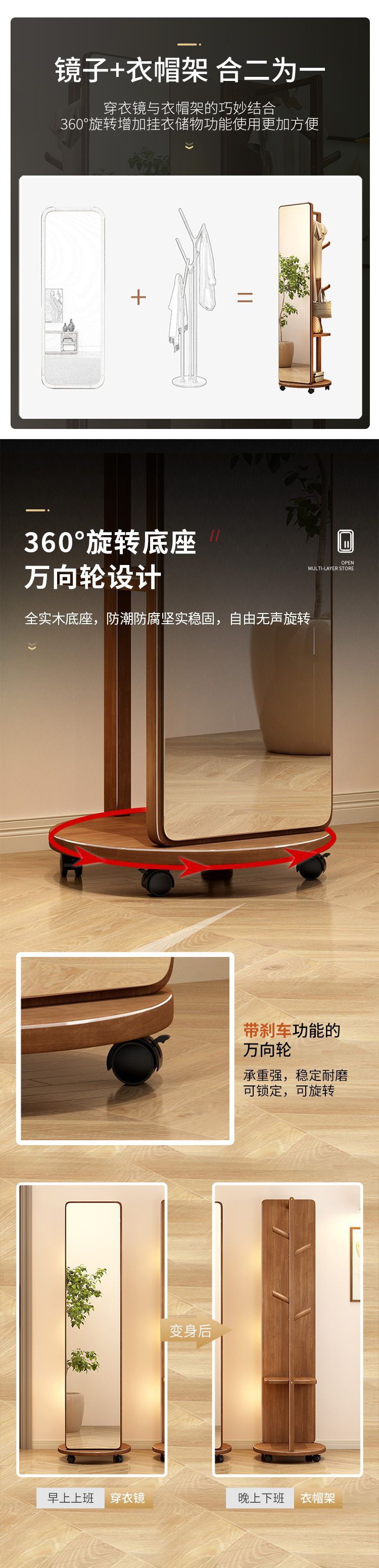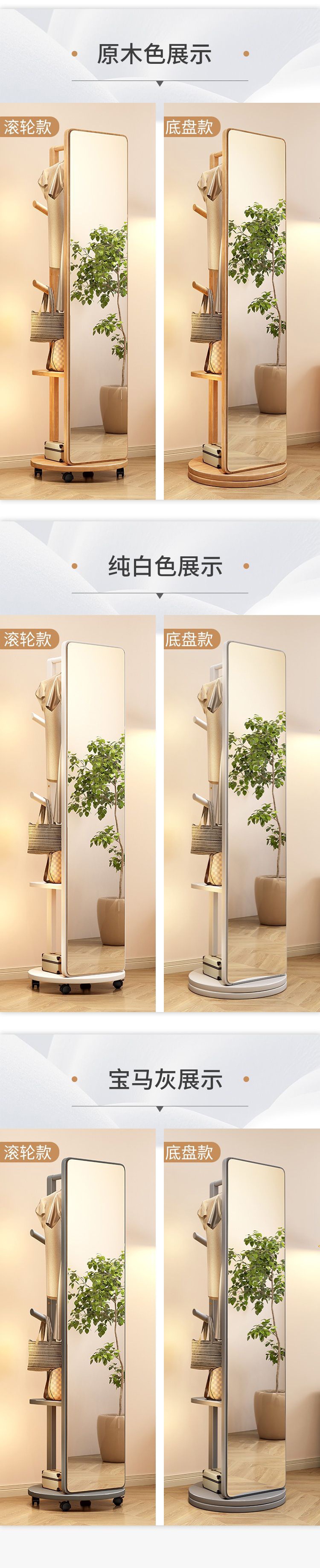 단단한 나무 드레싱 거울 전체 길이 거울 가구 회전 가능한 옷걸이 바닥 거울 보관 랙 침실 피팅스토어 가기