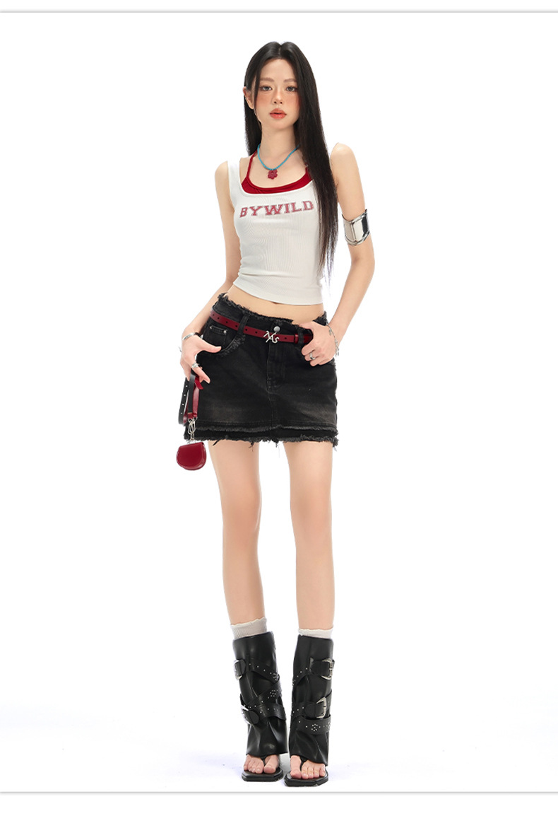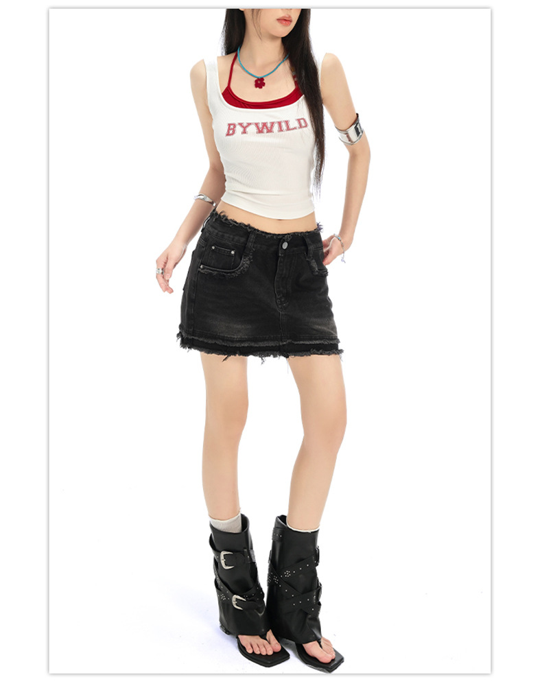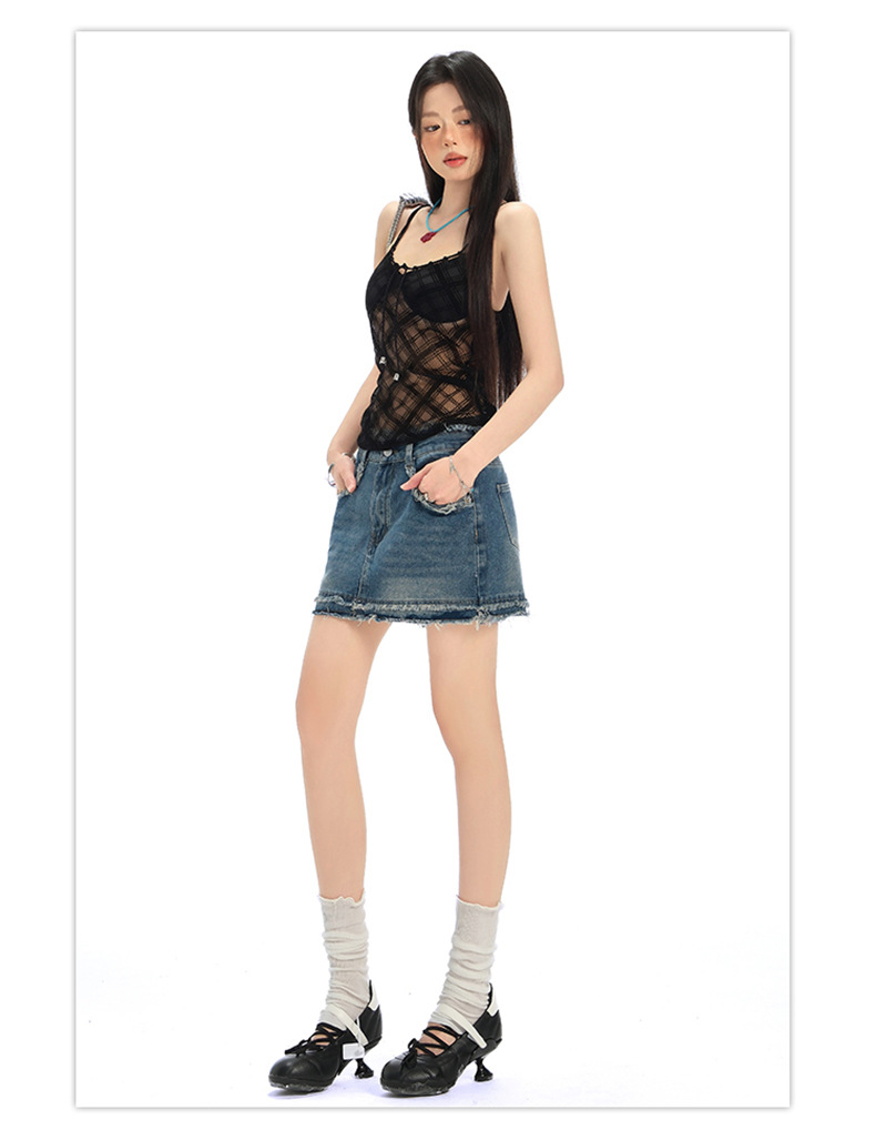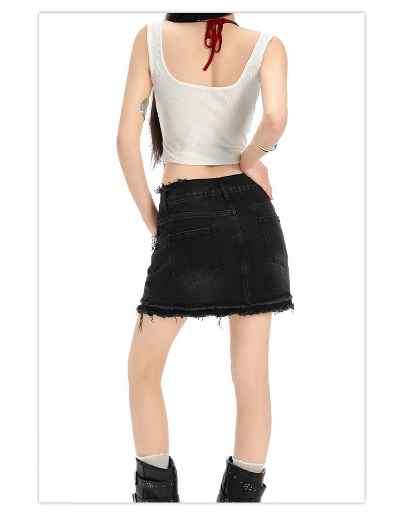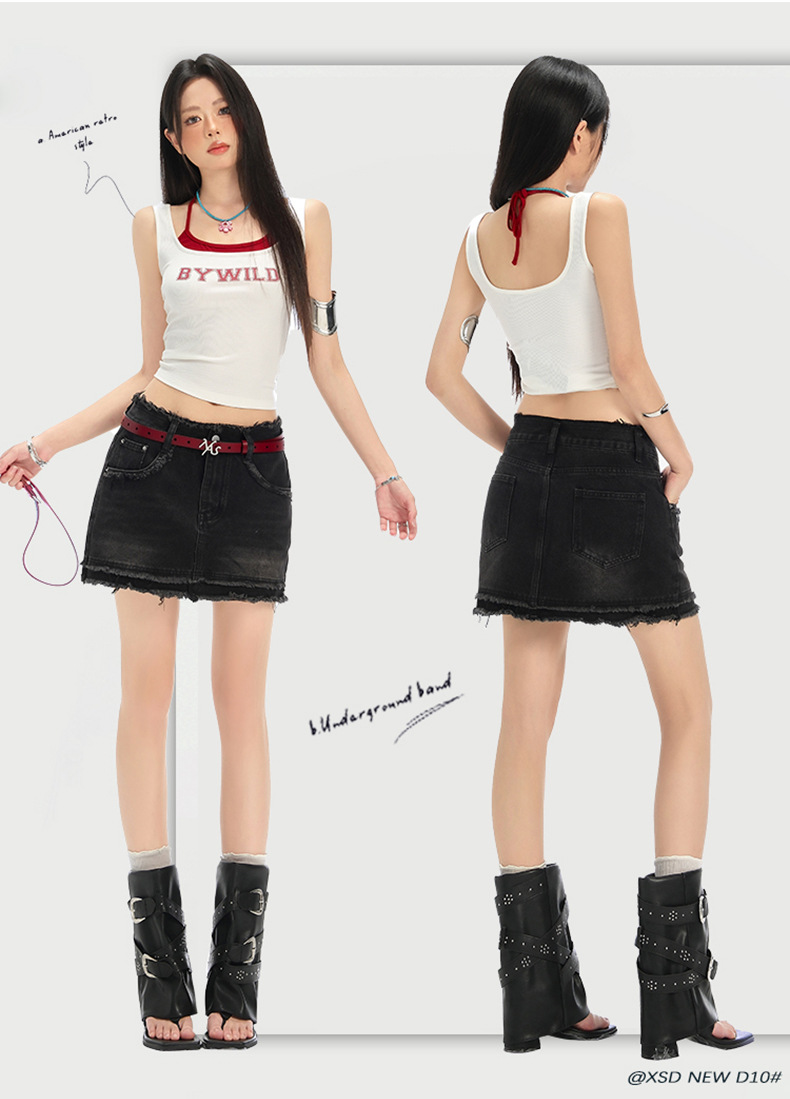 엣지 디자인과 안감이 있는 홍콩 스타일 데님 스커트, 초짧은 스커트, 여름 슬리밍 힙 스커트 25번째 ootd!