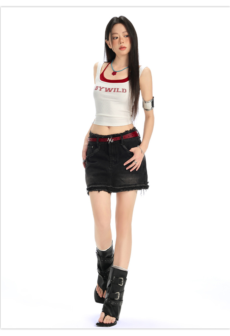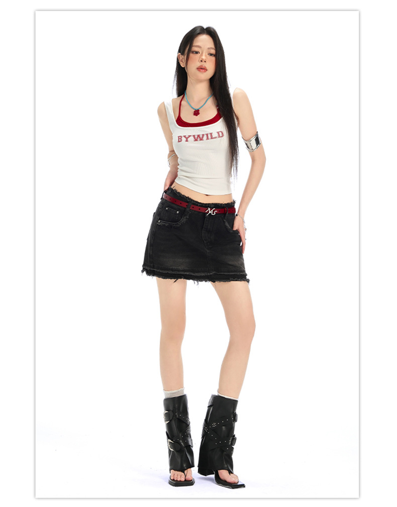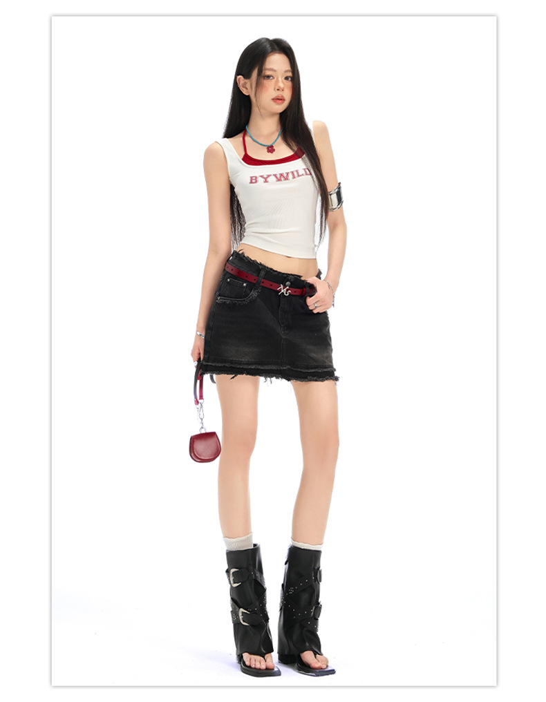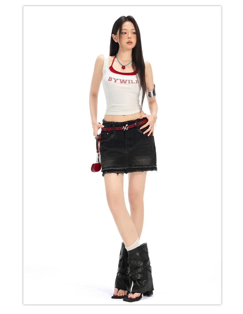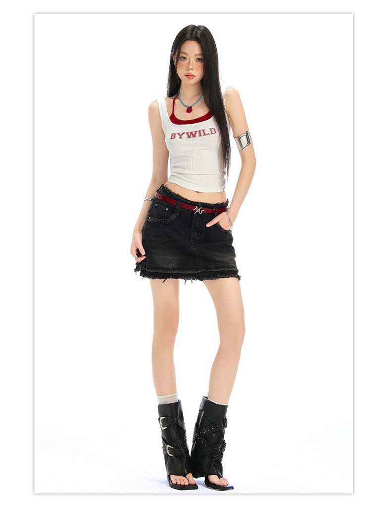 엣지 디자인과 안감이 있는 홍콩 스타일 데님 스커트, 초짧은 스커트, 여름 슬리밍 힙 스커트 25번째 ootd!