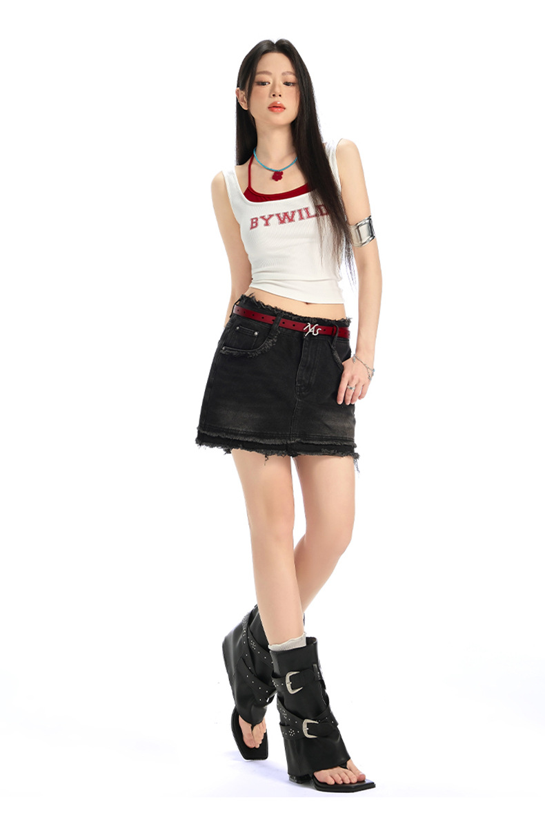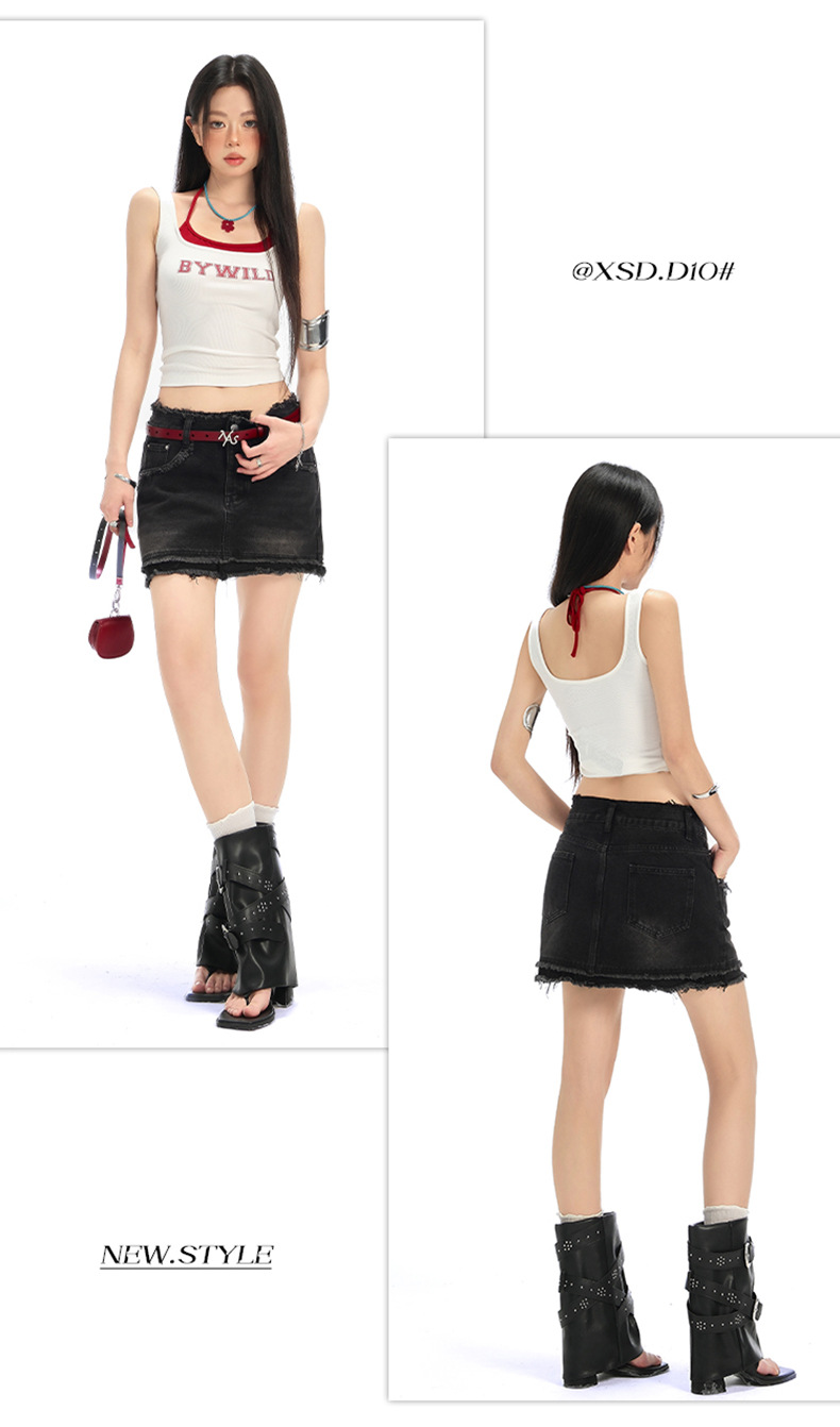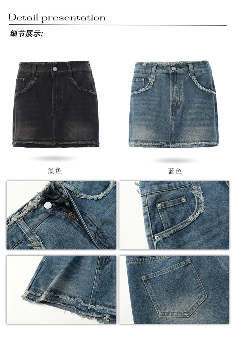 엣지 디자인과 안감이 있는 홍콩 스타일 데님 스커트, 초짧은 스커트, 여름 슬리밍 힙 스커트 25번째 ootd!스토어 가기