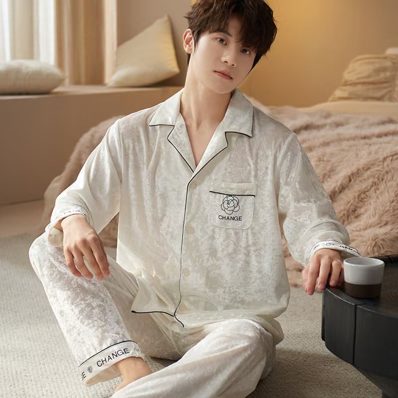 가을 신상 골드 벨벳 커플 잠옷, 인터넷 연예인 핫 스타일, 심플하고 캐주얼한 한국식 가디건, 집 밖에서도 입을 수 있는 옷.