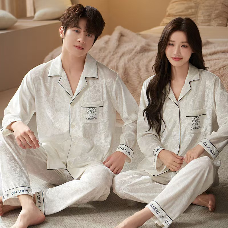 가을 신상 골드 벨벳 커플 잠옷, 인터넷 연예인 핫 스타일, 심플하고 캐주얼한 한국식 가디건, 집 밖에서도 입을 수 있는 옷.스토어 가기