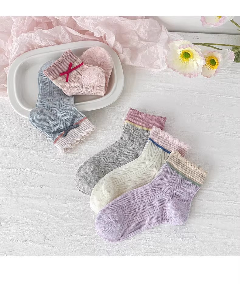 소녀 짧은 양말 봄과 여름 얇은 메쉬 양말 통기성 레이스 공주 양말 달콤한 아기 소녀 공주 스타일 어린 소녀