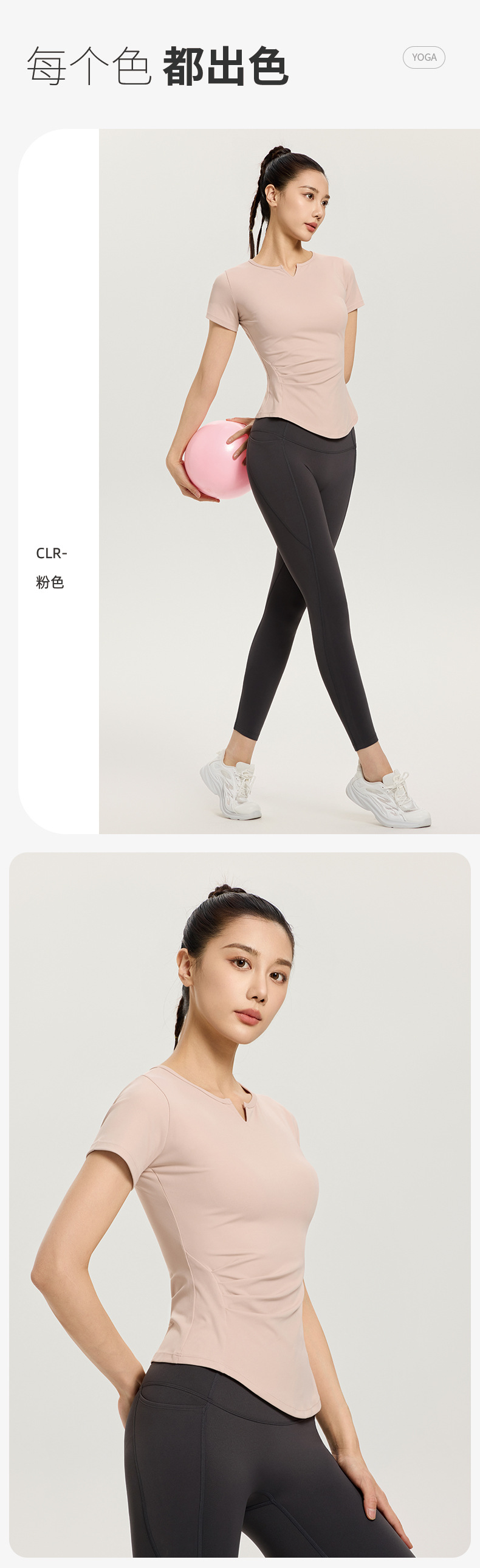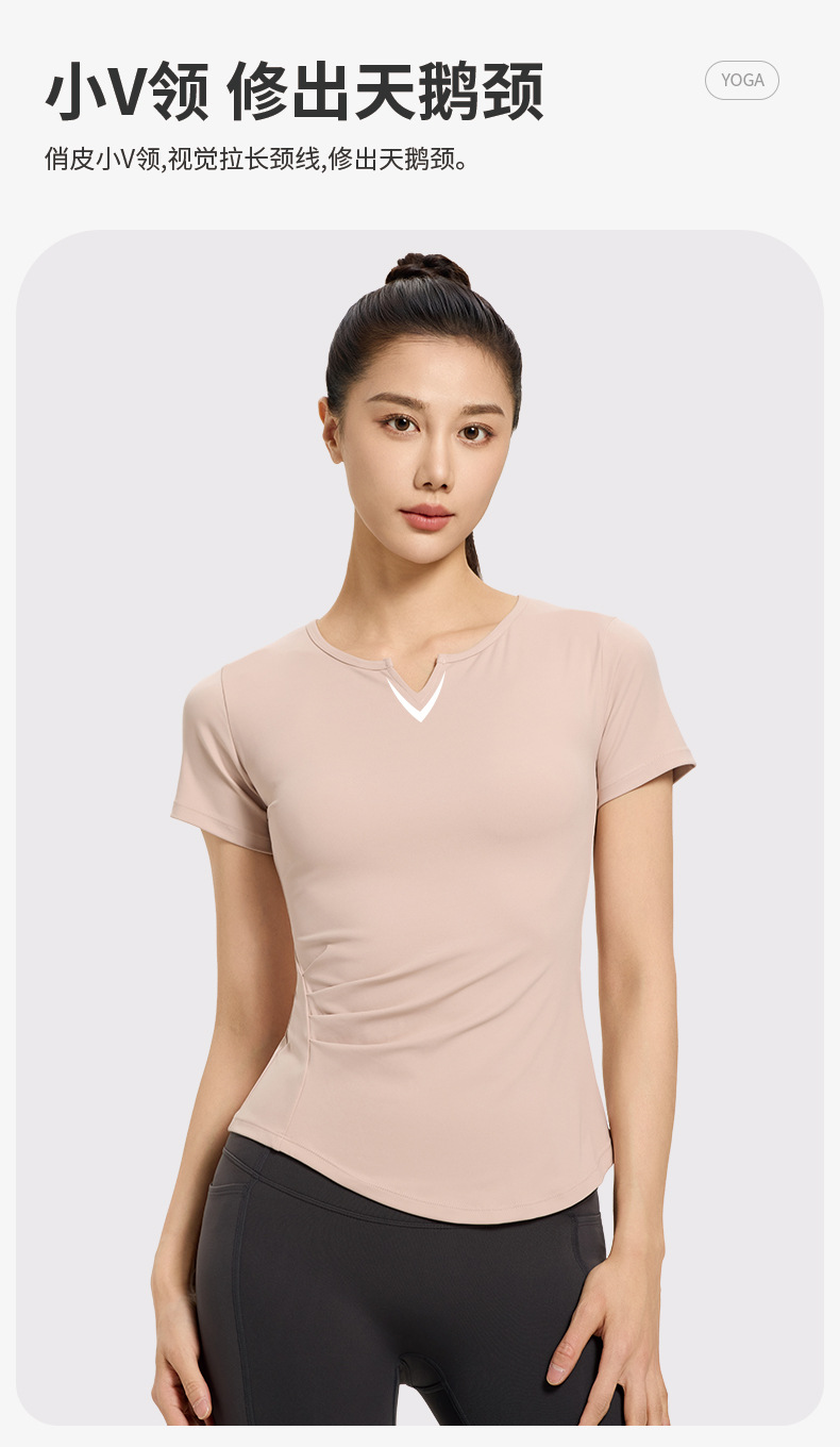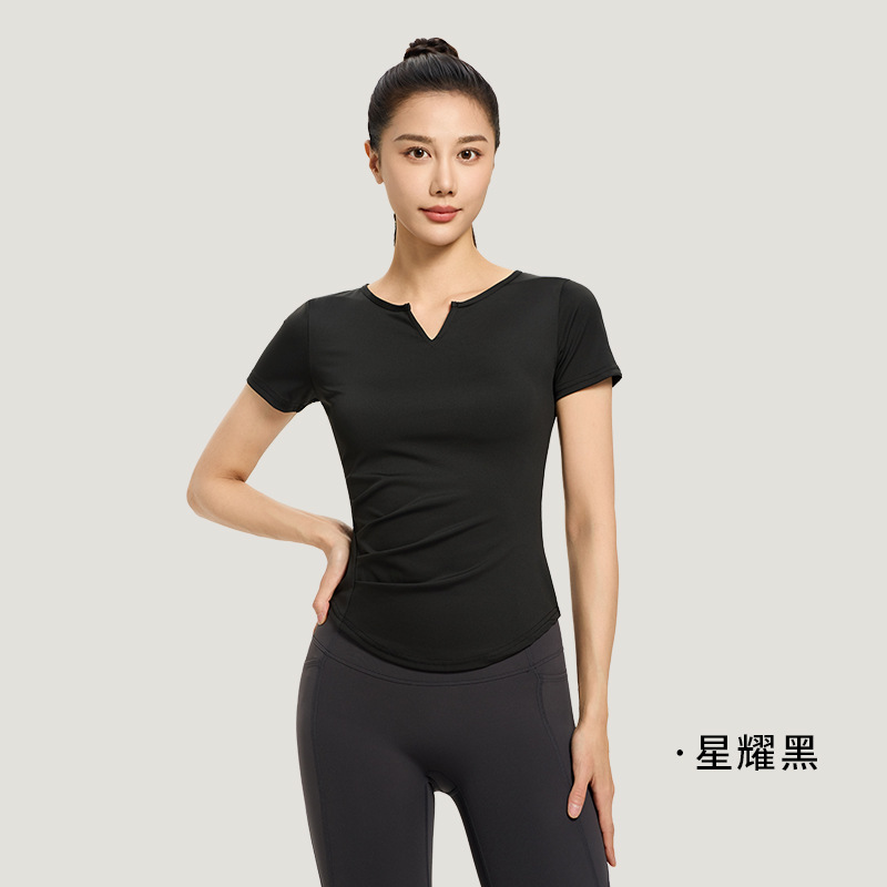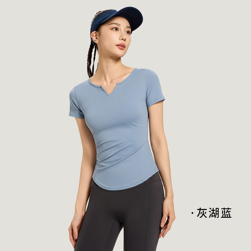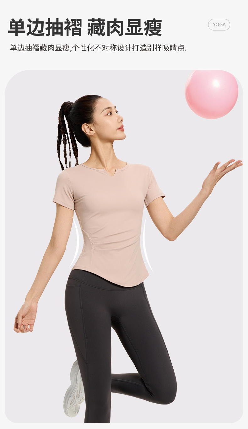 룰루 요가복 누드 느낌 주름 상의 반팔 러닝 피트니스 트레이닝 댄스 흡습속건 여성 티셔츠