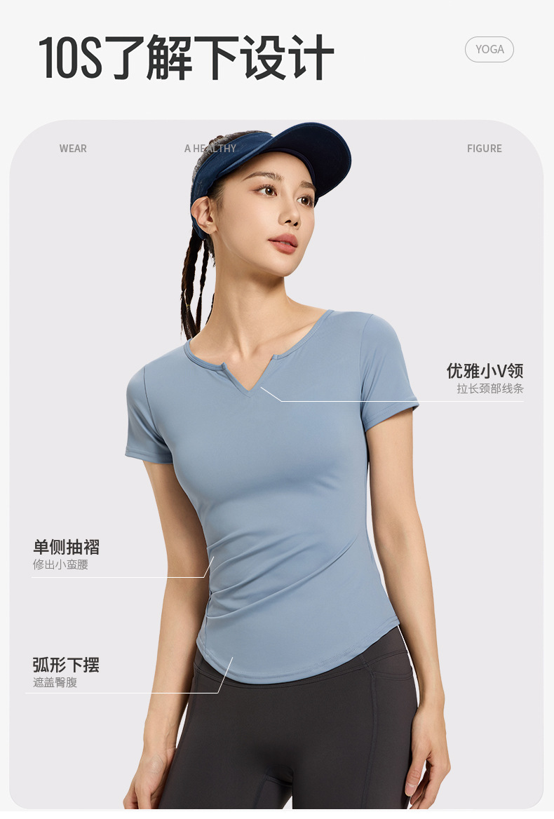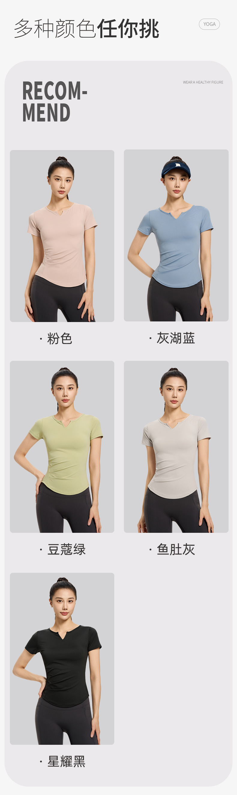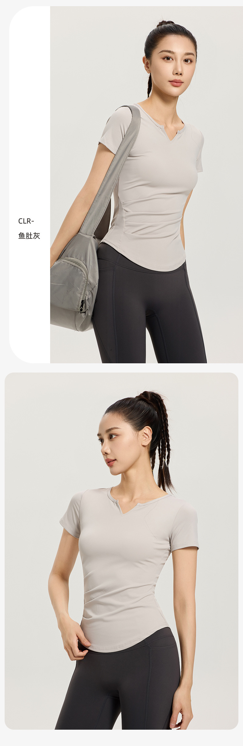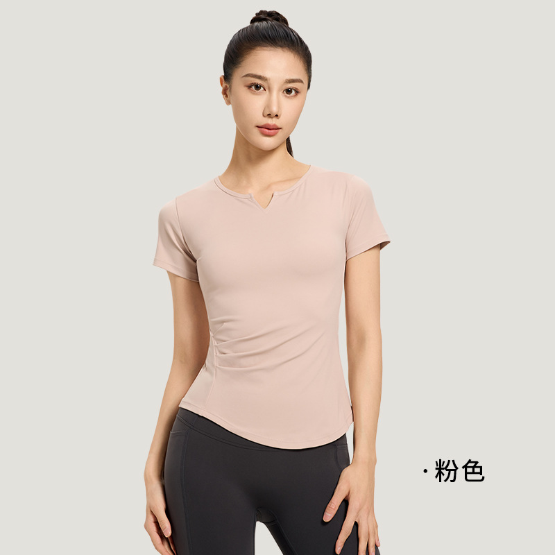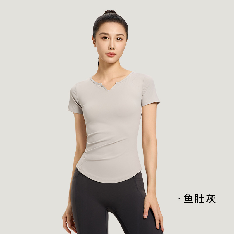 룰루 요가복 누드 느낌 주름 상의 반팔 러닝 피트니스 트레이닝 댄스 흡습속건 여성 티셔츠