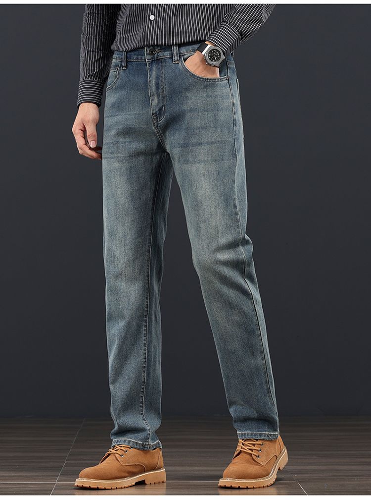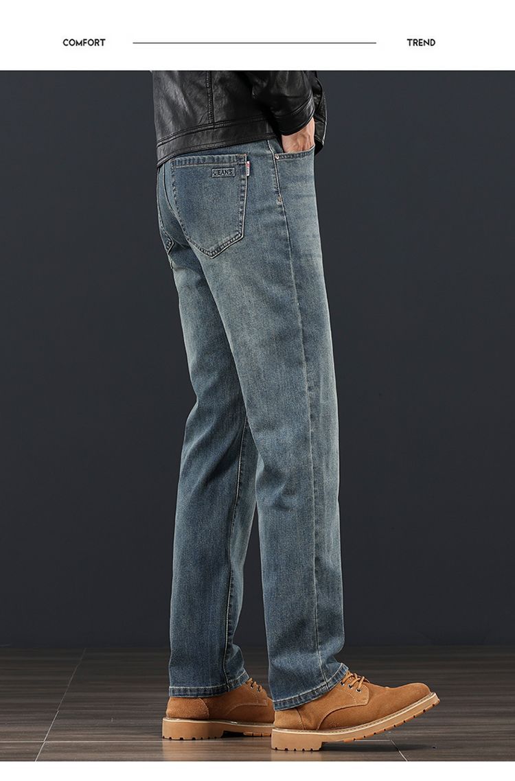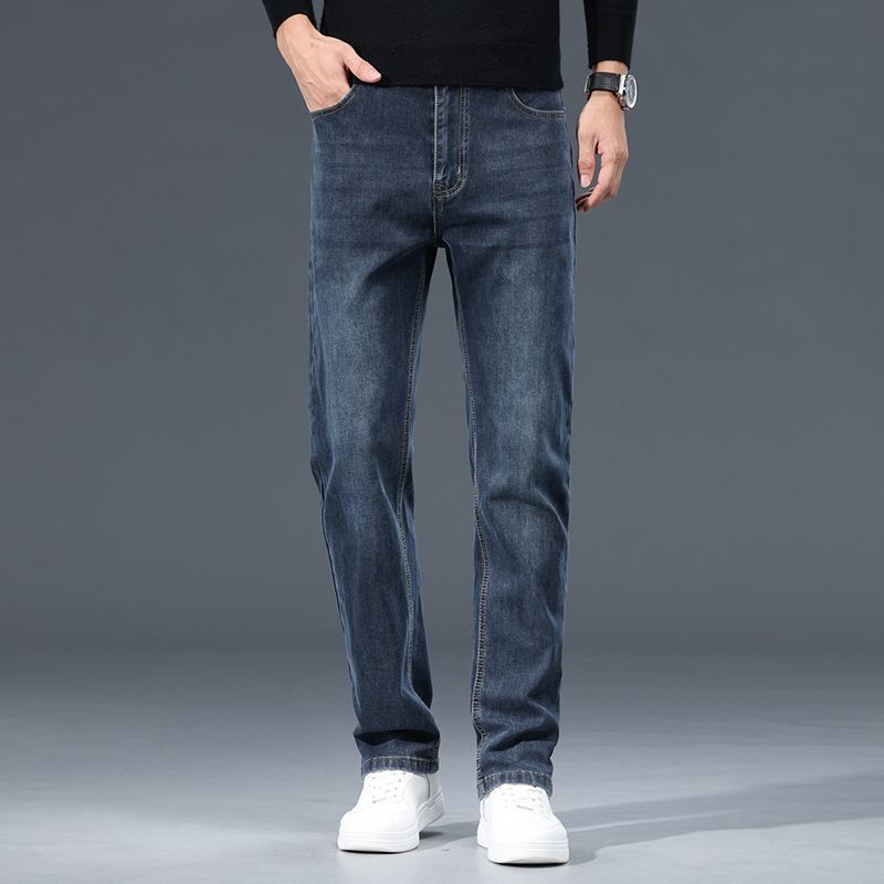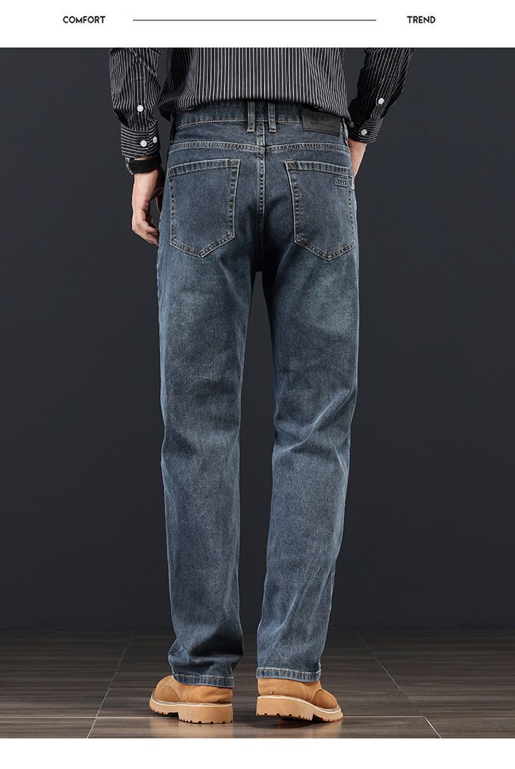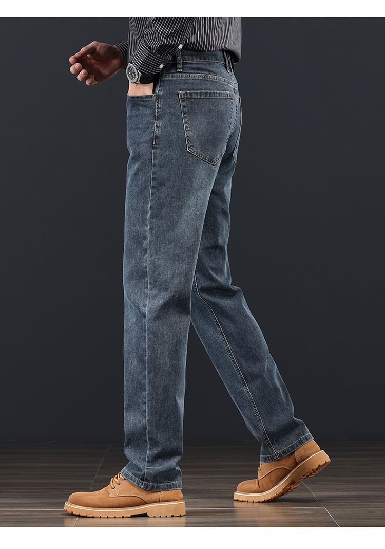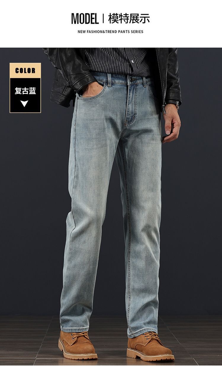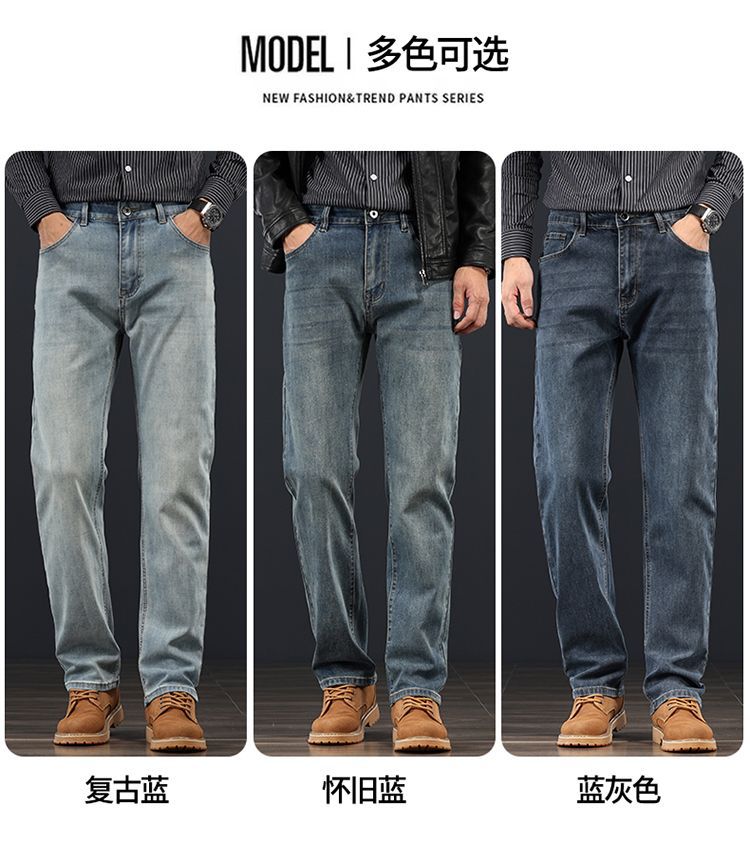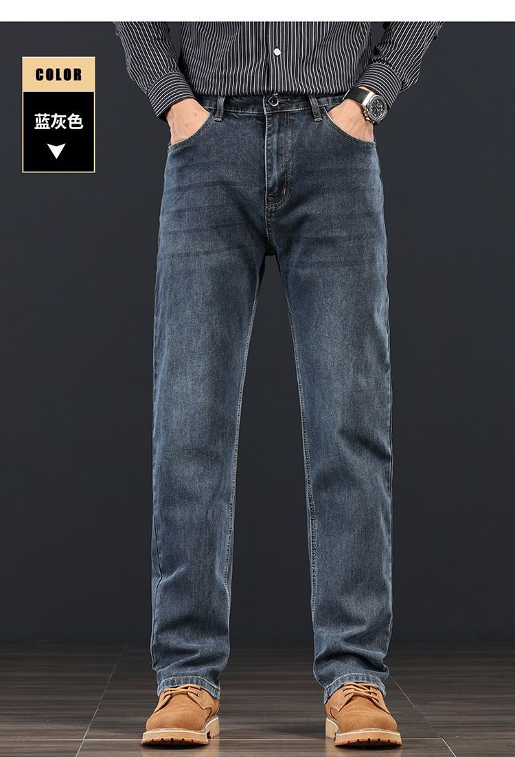 고급 가을 겨울 두꺼운 남성용 청바지 트렌디한 루즈핏 스트레이트 라이트 비즈니스 신축성 있는 긴 바지스토어 가기