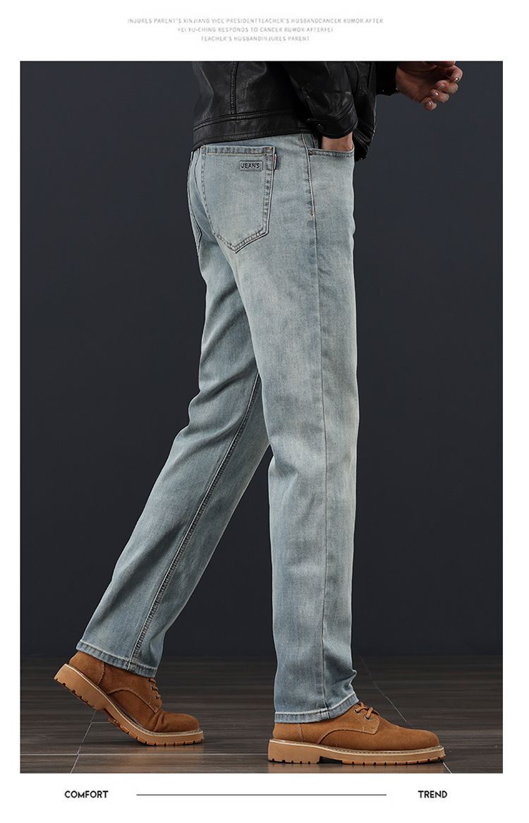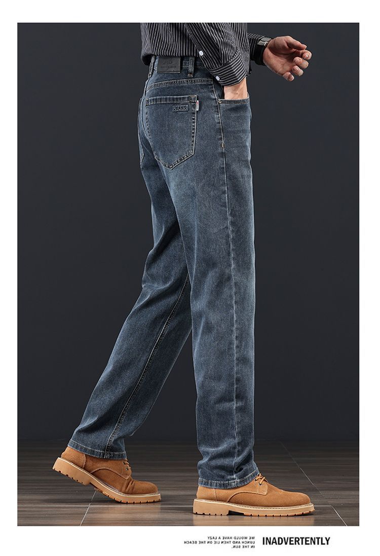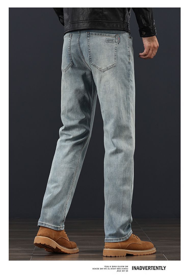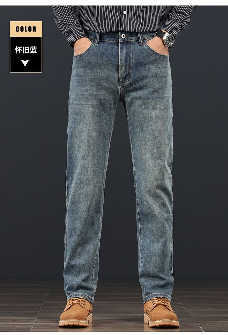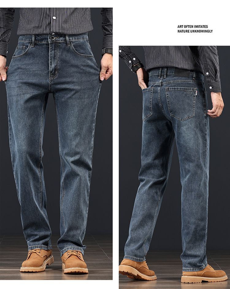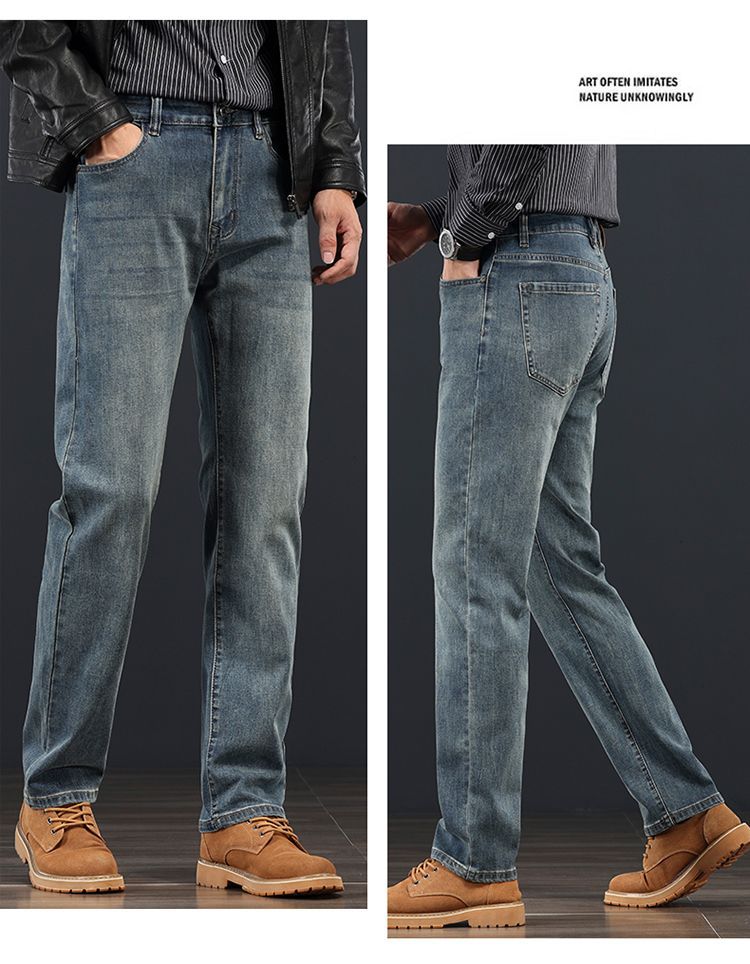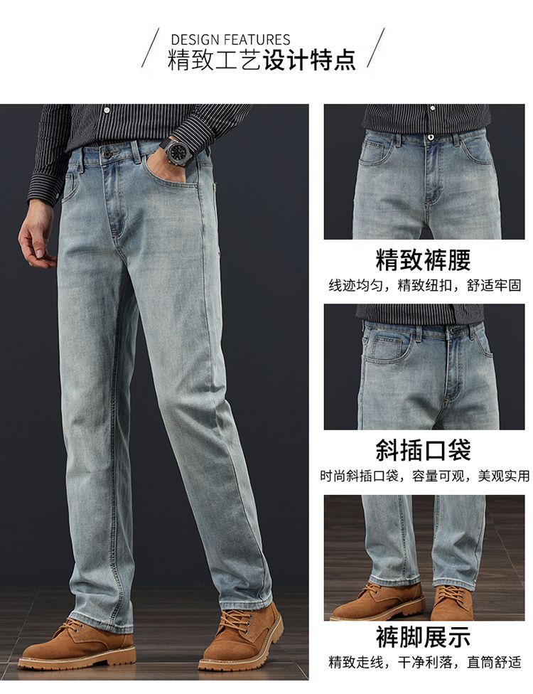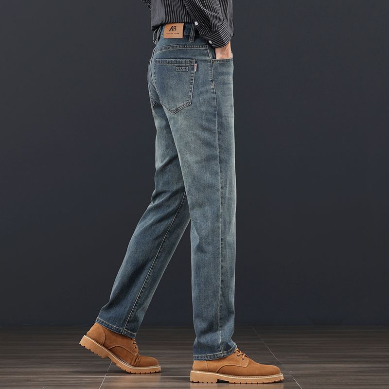 고급 가을 겨울 두꺼운 남성용 청바지 트렌디한 루즈핏 스트레이트 라이트 비즈니스 신축성 있는 긴 바지스토어 가기