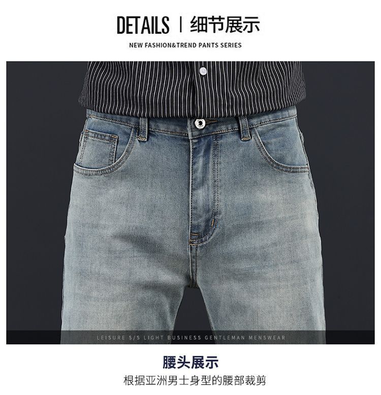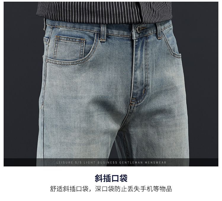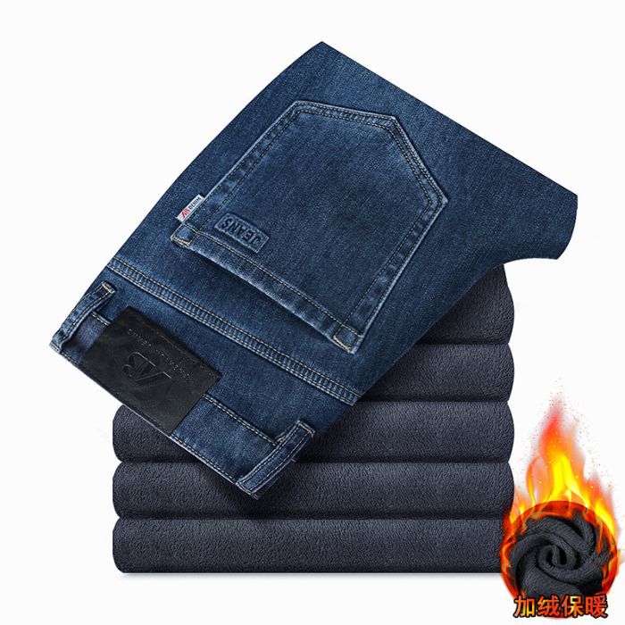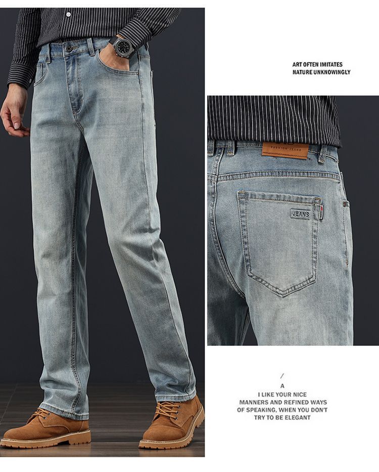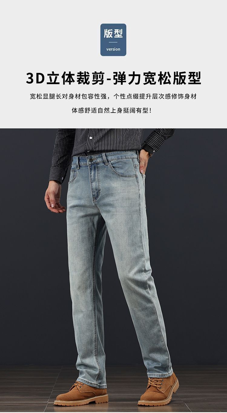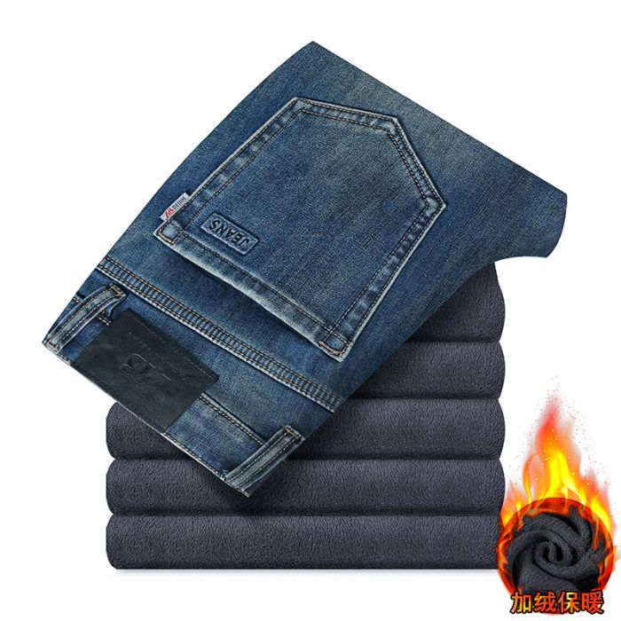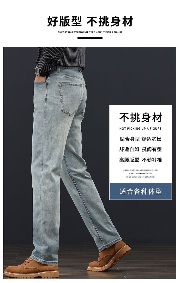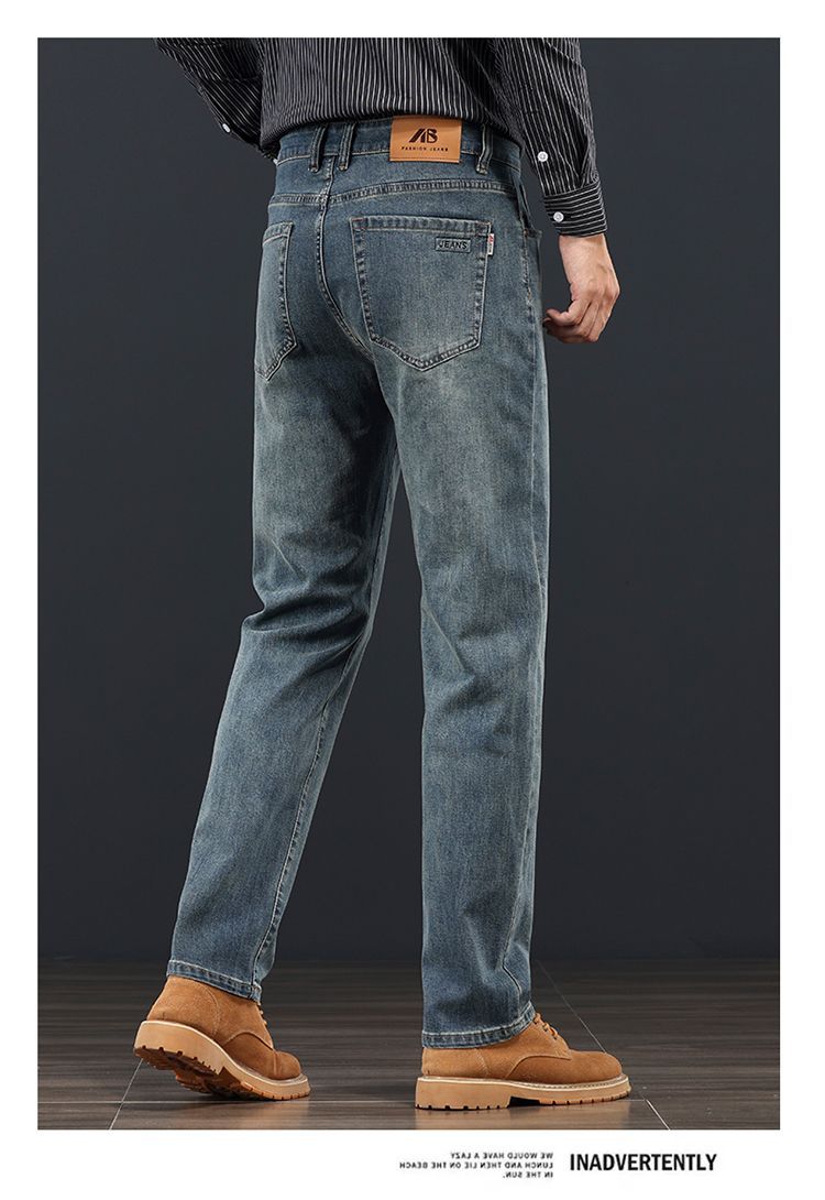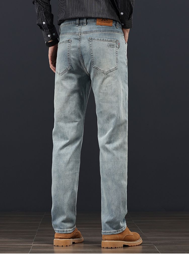 고급 가을 겨울 두꺼운 남성용 청바지 트렌디한 루즈핏 스트레이트 라이트 비즈니스 신축성 있는 긴 바지스토어 가기