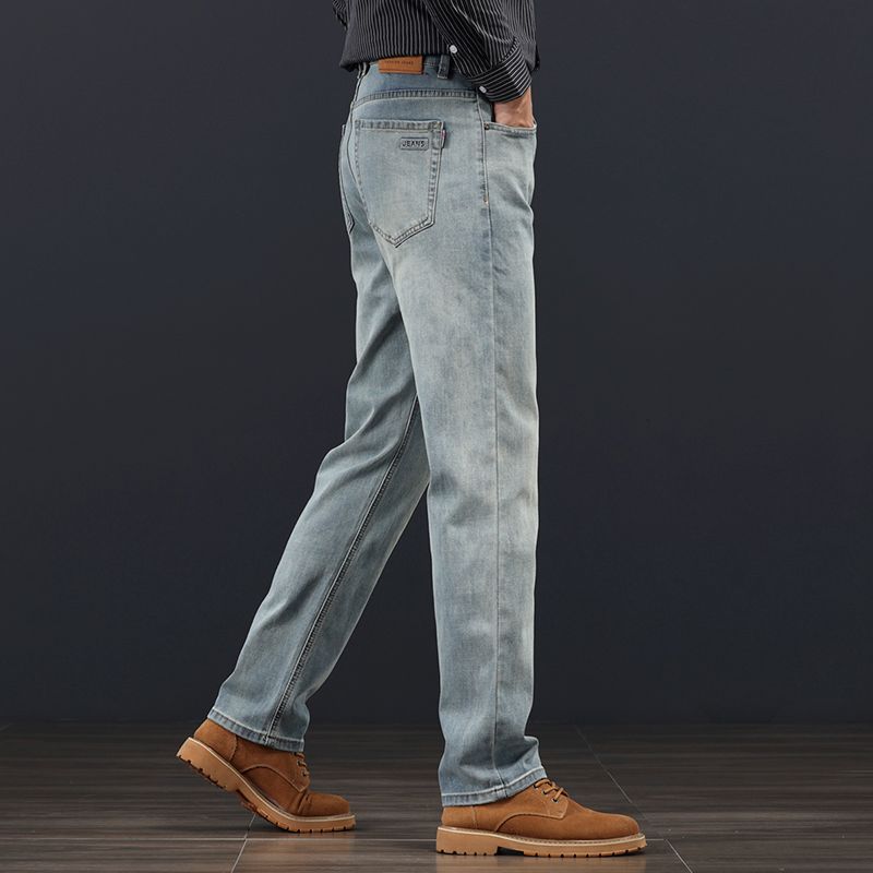 고급 가을 겨울 두꺼운 남성용 청바지 트렌디한 루즈핏 스트레이트 라이트 비즈니스 신축성 있는 긴 바지