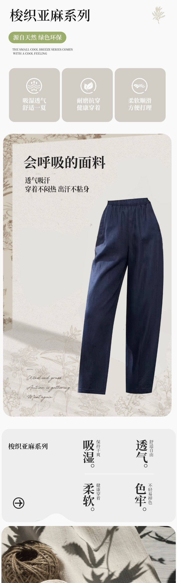 봄철 고품질 100% 린넨 여성 루즈핏 롱 팬츠, 활용도 높은 스트레이트 팬츠, 소녀용 9부 팬츠스토어 가기