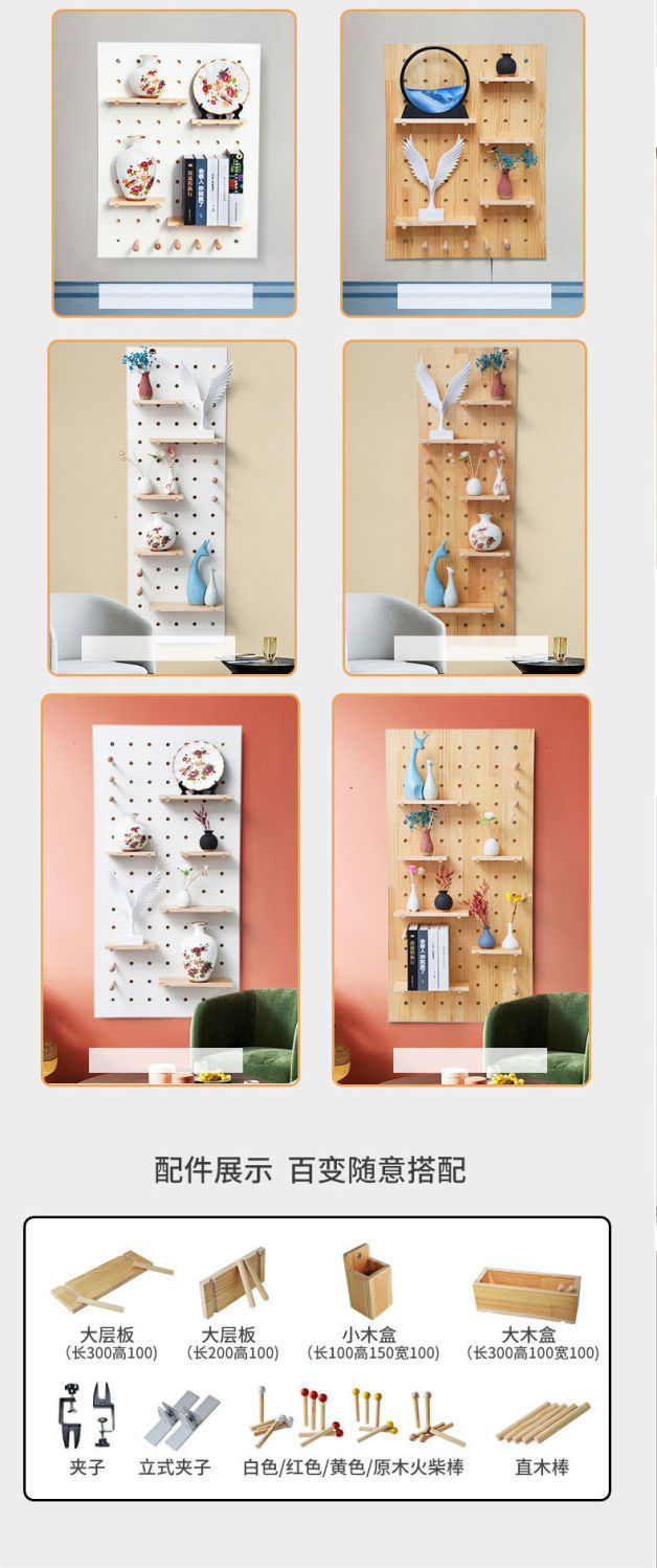 홀 보드 벽 선반 단단한 나무 보드 장식 벽 디스플레이 랙 벽 칸막이 수납 입구 선반 공장