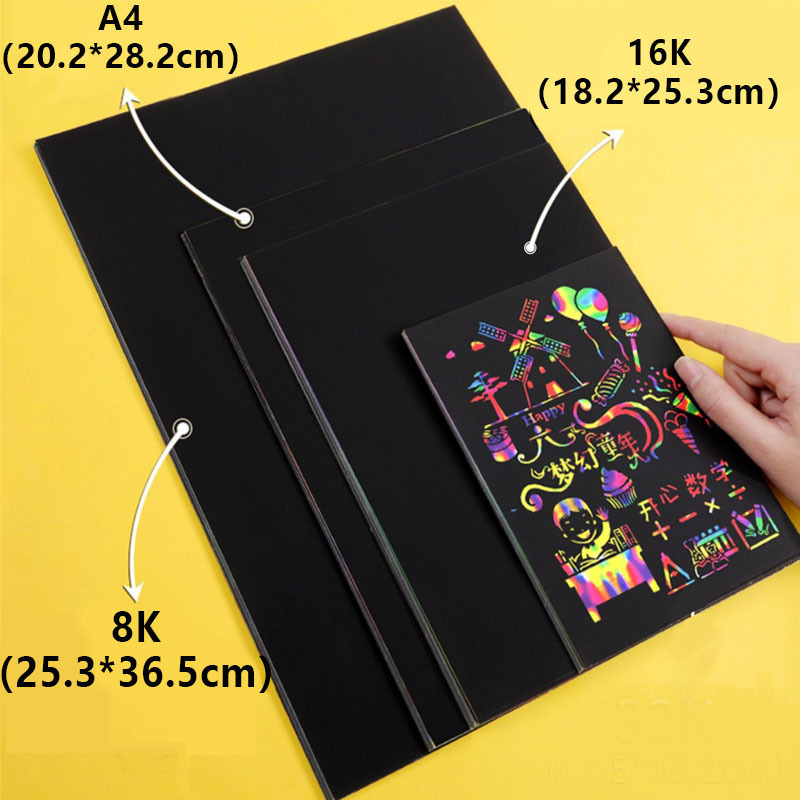 다채로운 스크래치 오프 종이 어린이 그림책 a4 스크래치 오프 8k 검은 스크래치 오프 왁스 종이 유치원 컬러 모래 그림 스크래치 오프스토어 가기