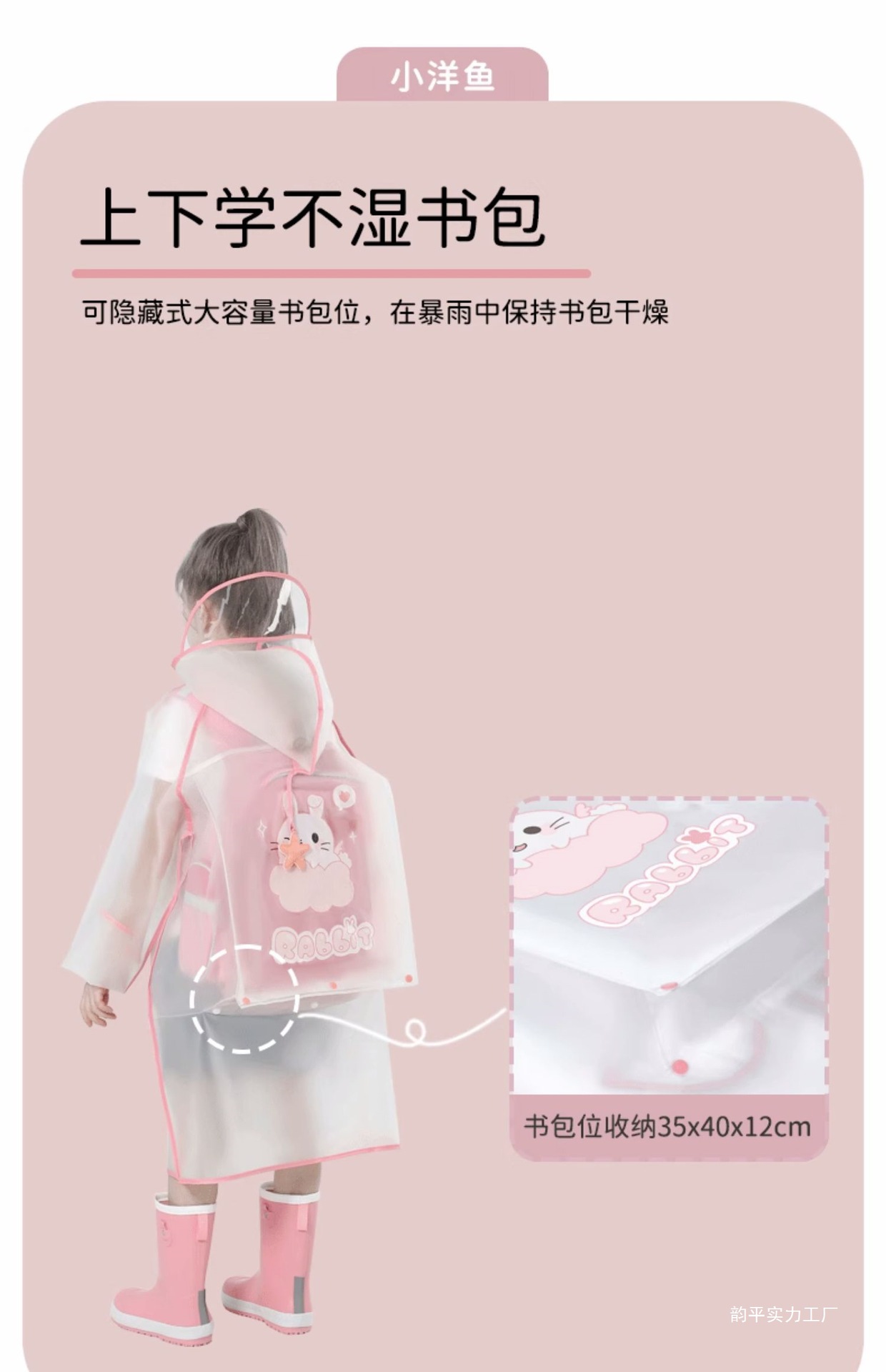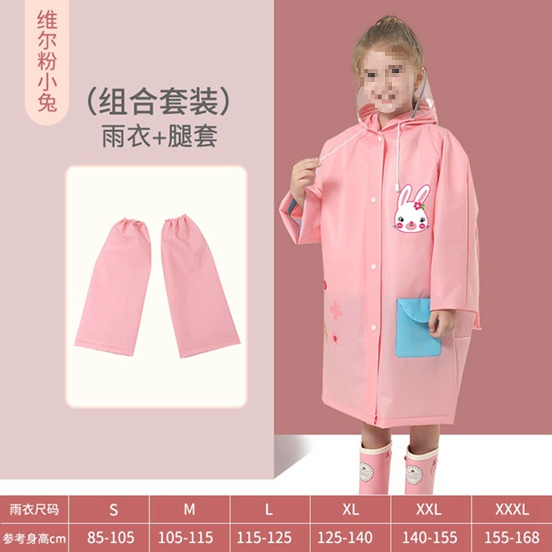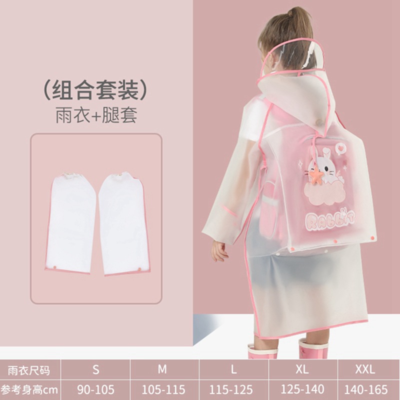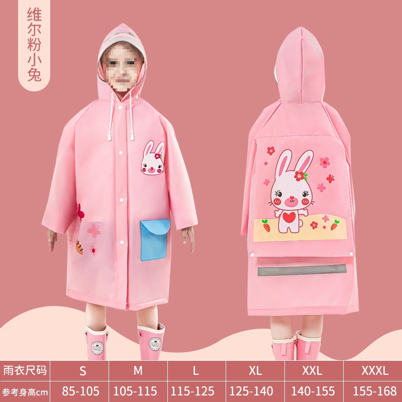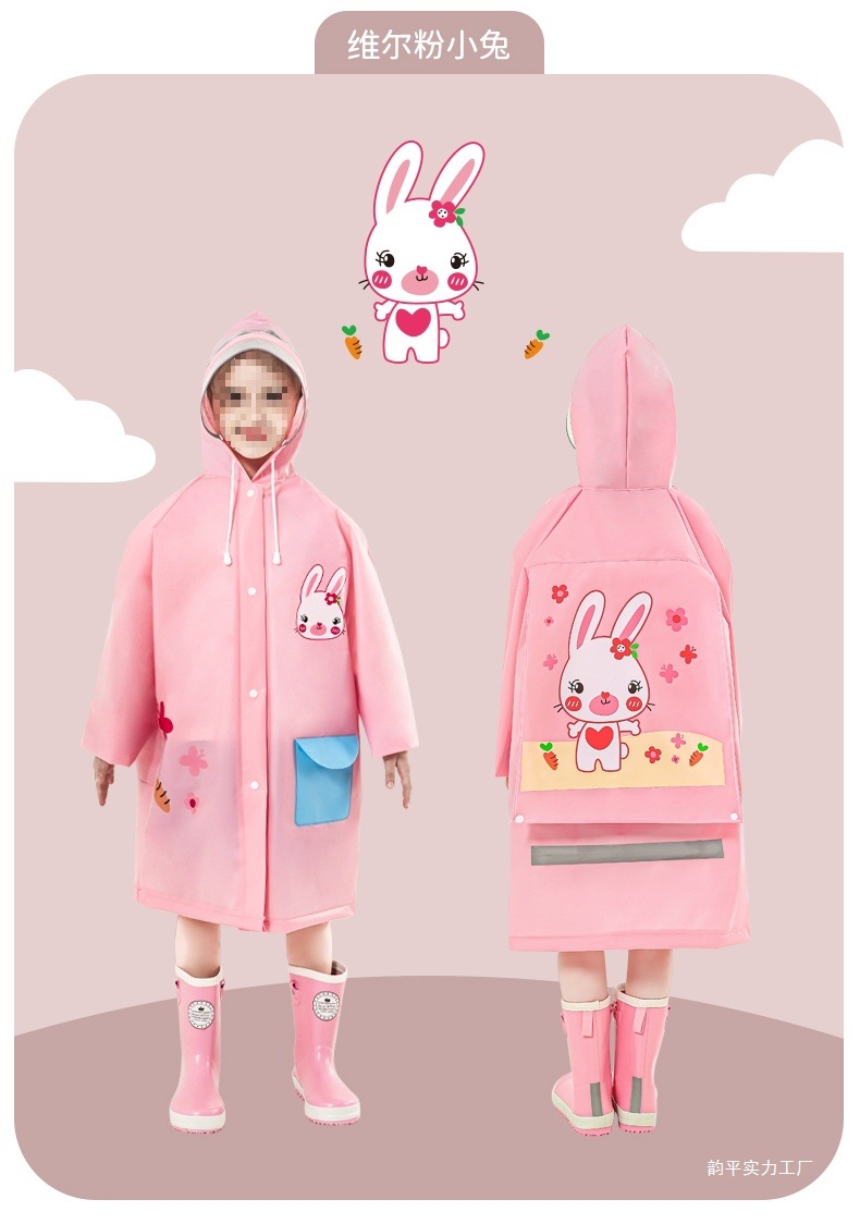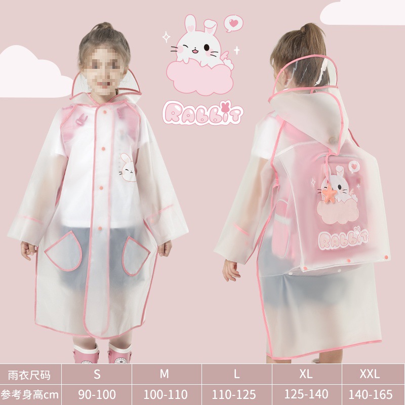 • 벨 핑크 토끼 비옷 [두껍고 튼튼하며 큰 가방 슬롯 포함]