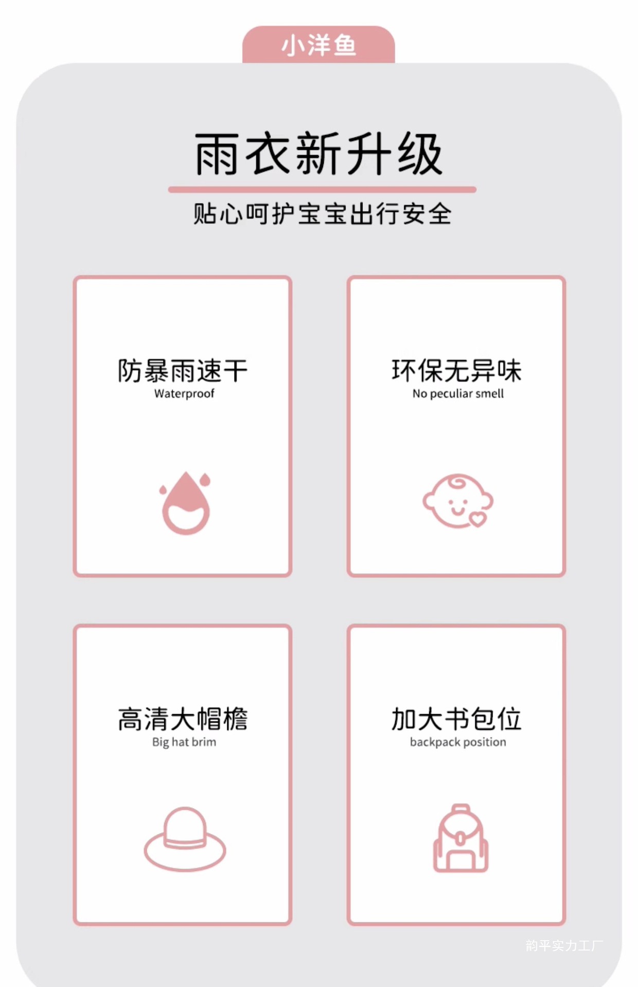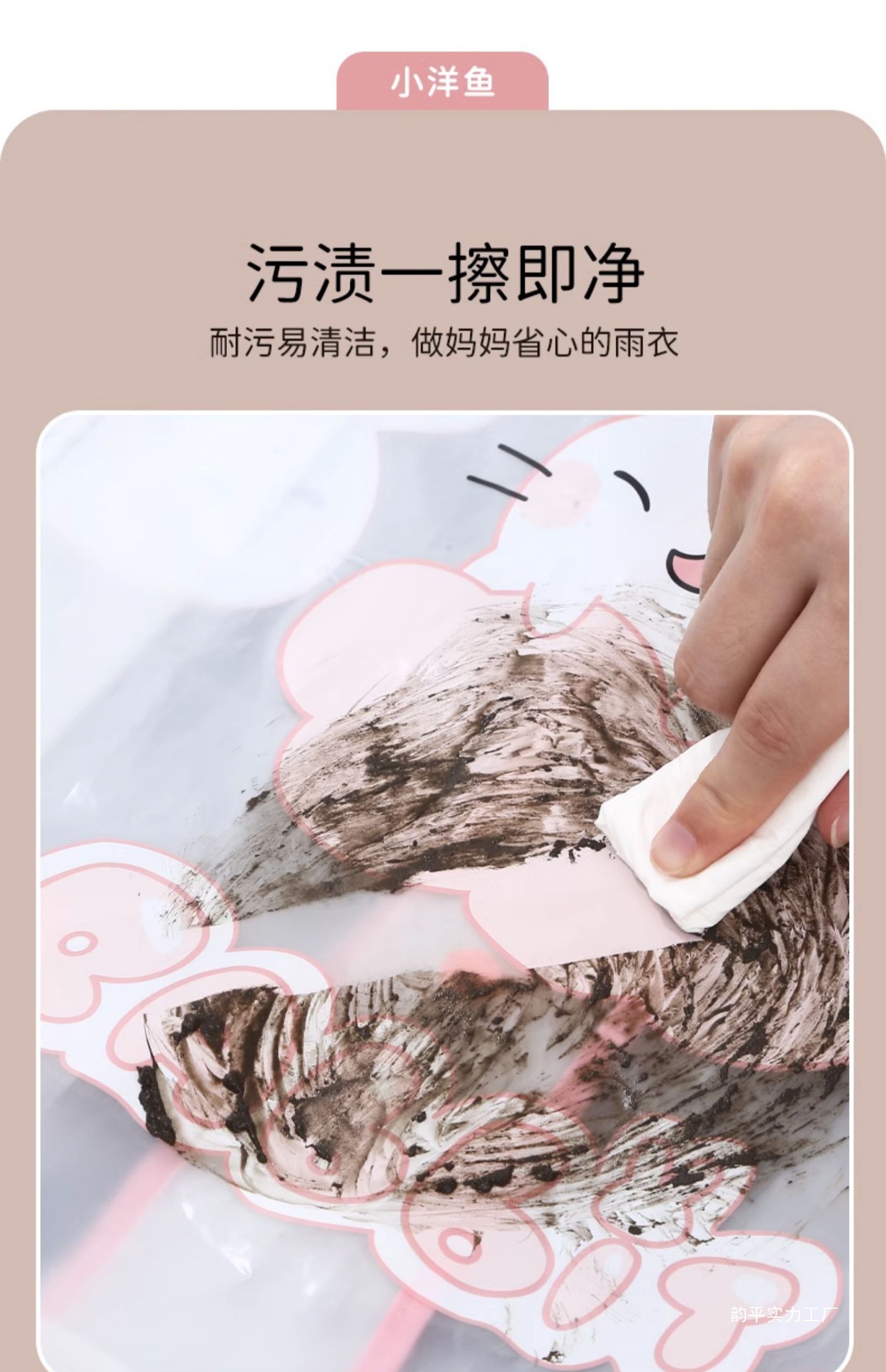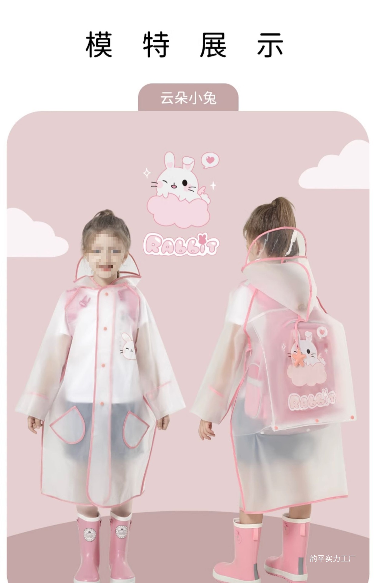 • 벨 핑크 토끼 비옷 [두껍고 튼튼하며 큰 가방 슬롯 포함]