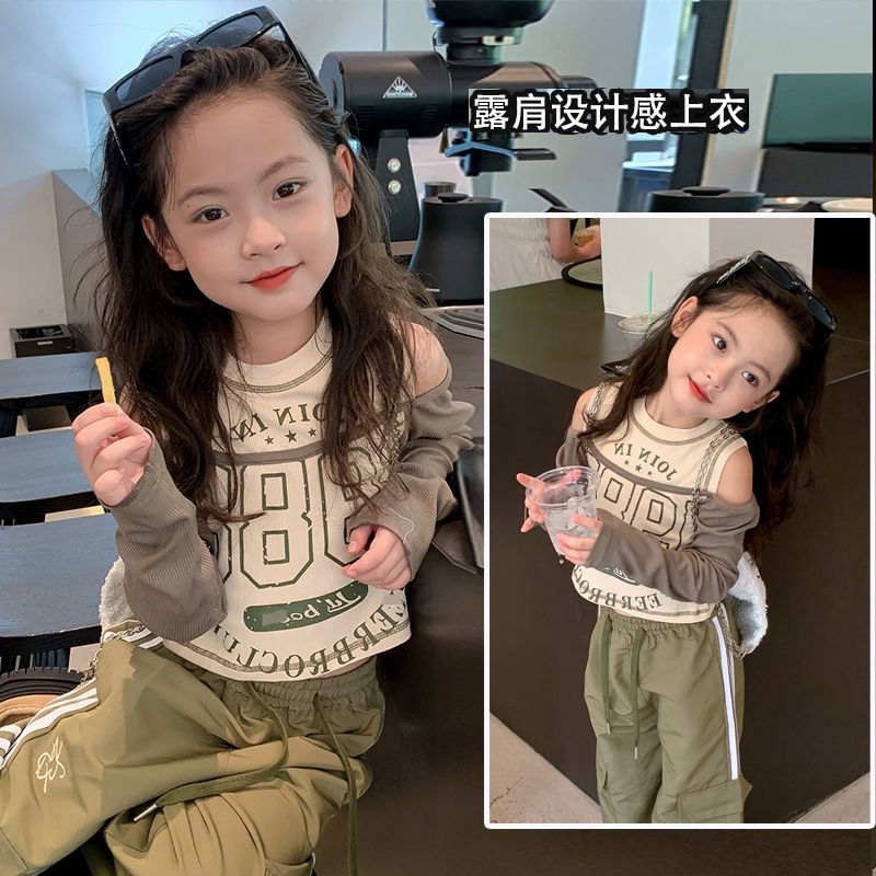 여자 한국 세트 2024 가을 새로운 빨간 어린이 어깨 탑 세련된 크록 바지 패션 투피스 세트스토어 가기