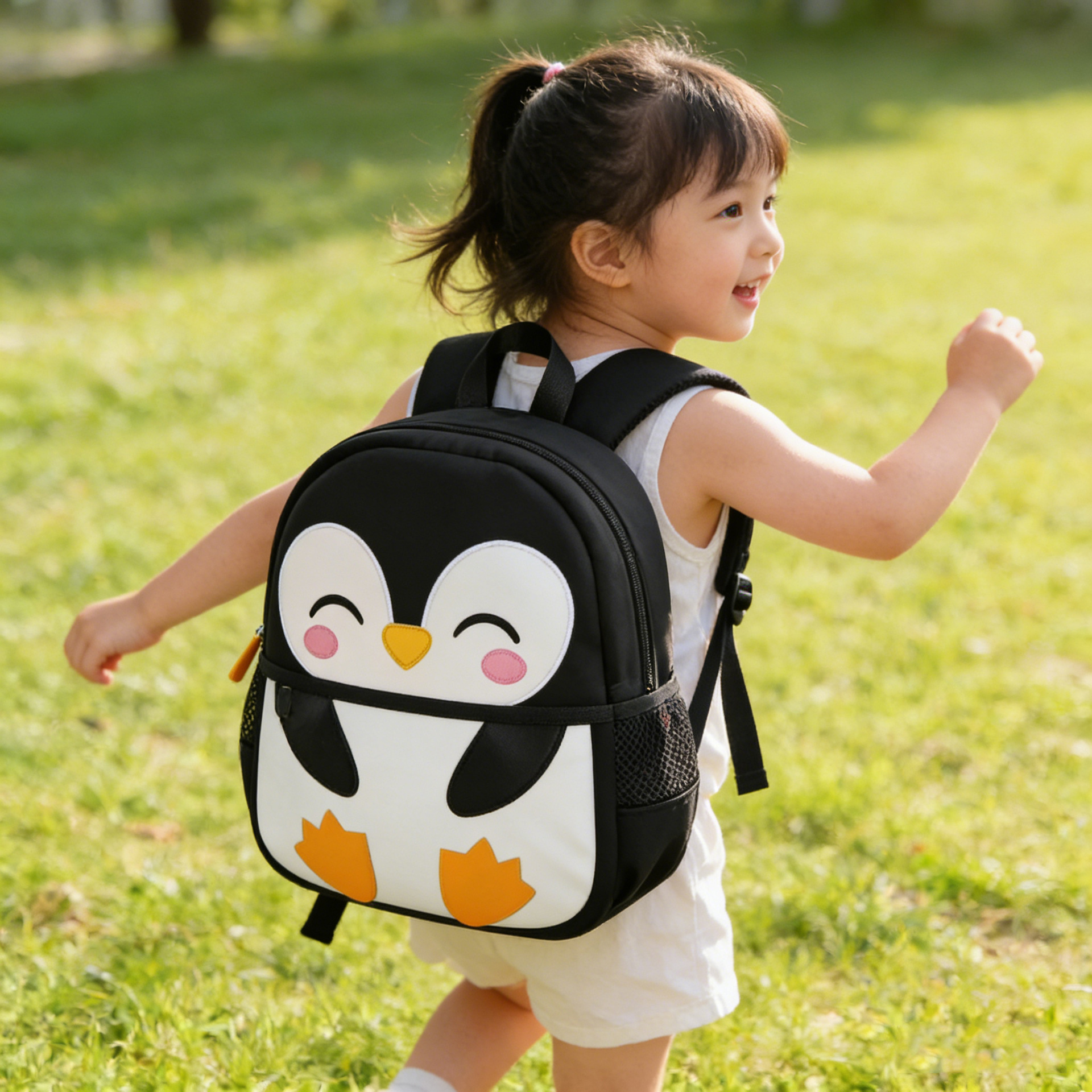 【분실 방지 끈 포함】신형 유아용 작은 펭귄 책가방 남녀 어린이용 다이빙 소재 2-6세 3단 배낭