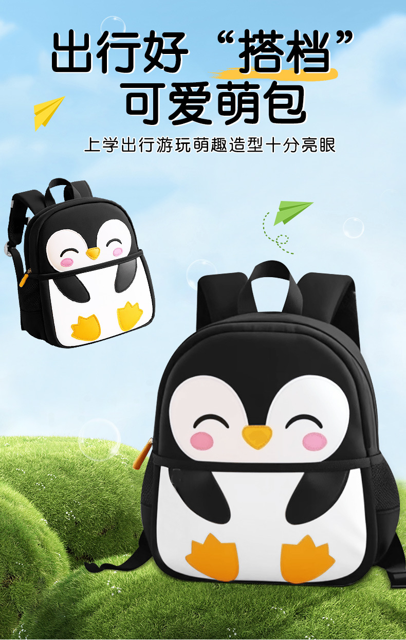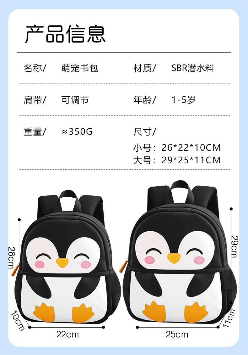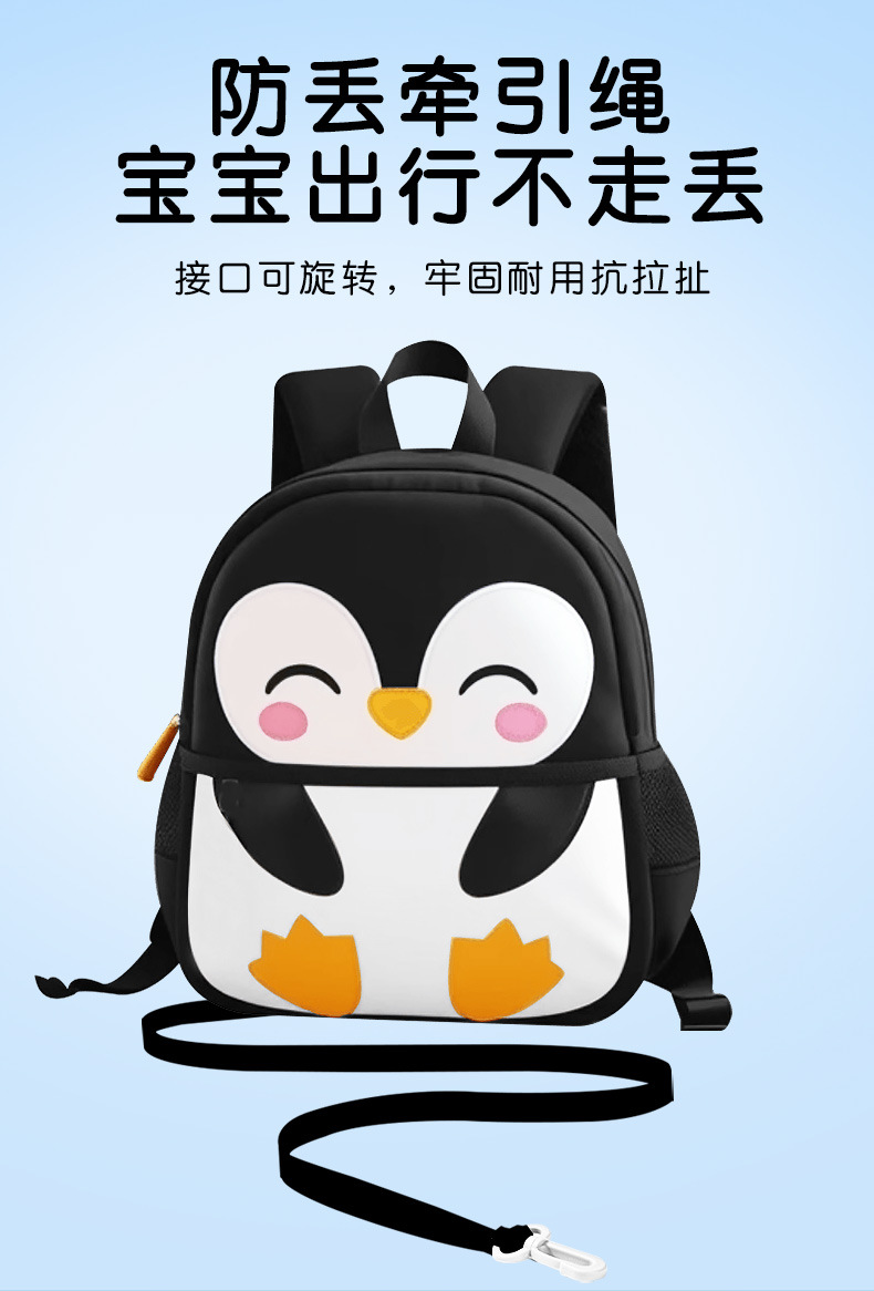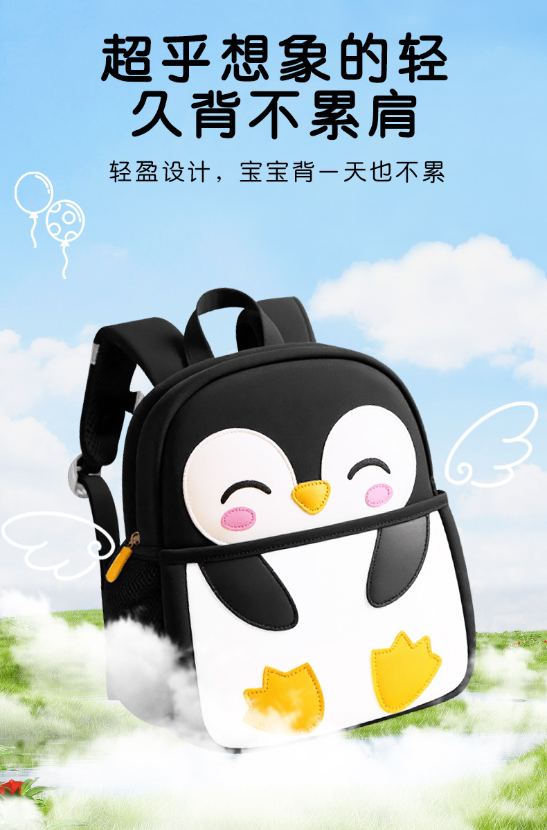 【분실 방지 끈 포함】신형 유아용 작은 펭귄 책가방 남녀 어린이용 다이빙 소재 2-6세 3단 배낭스토어 가기