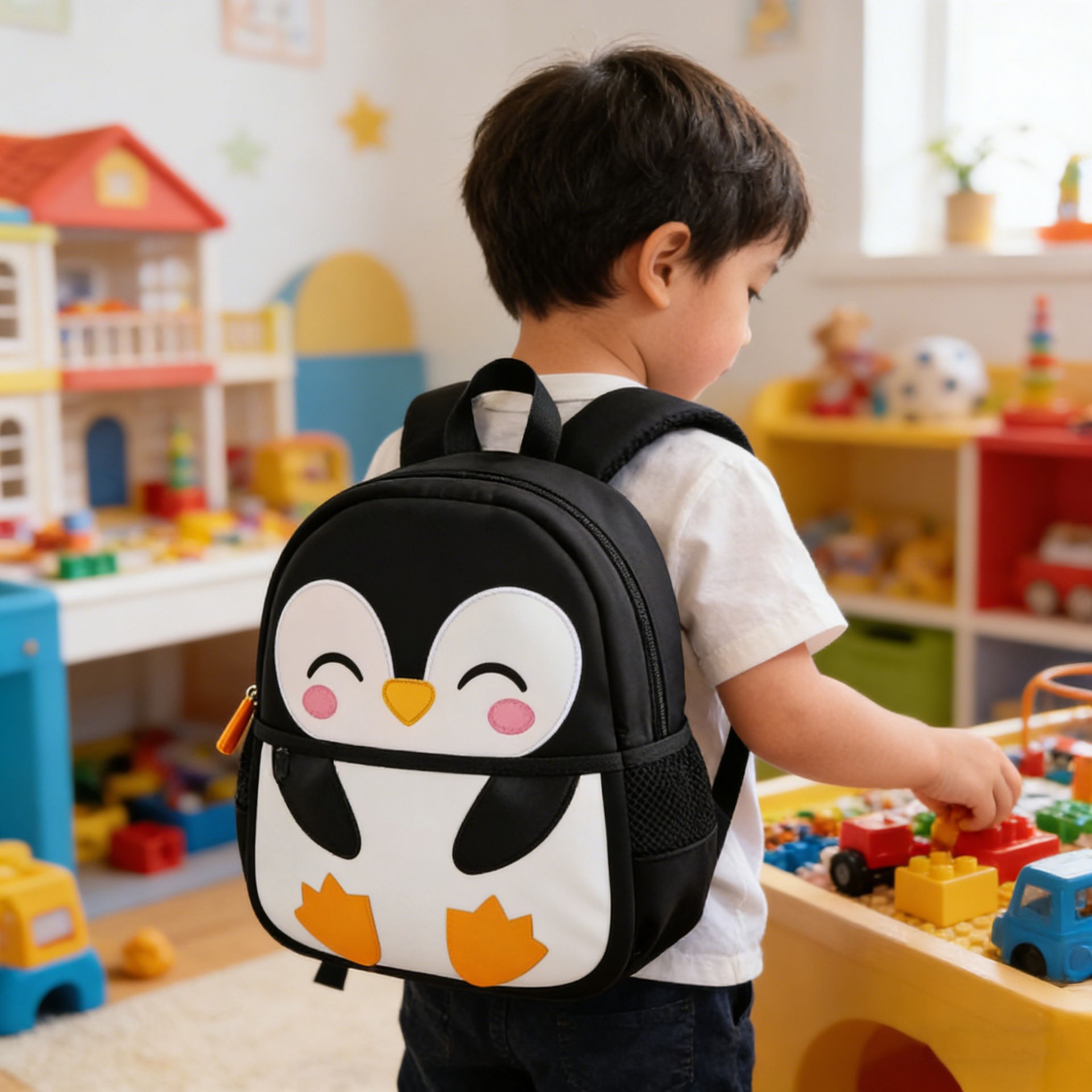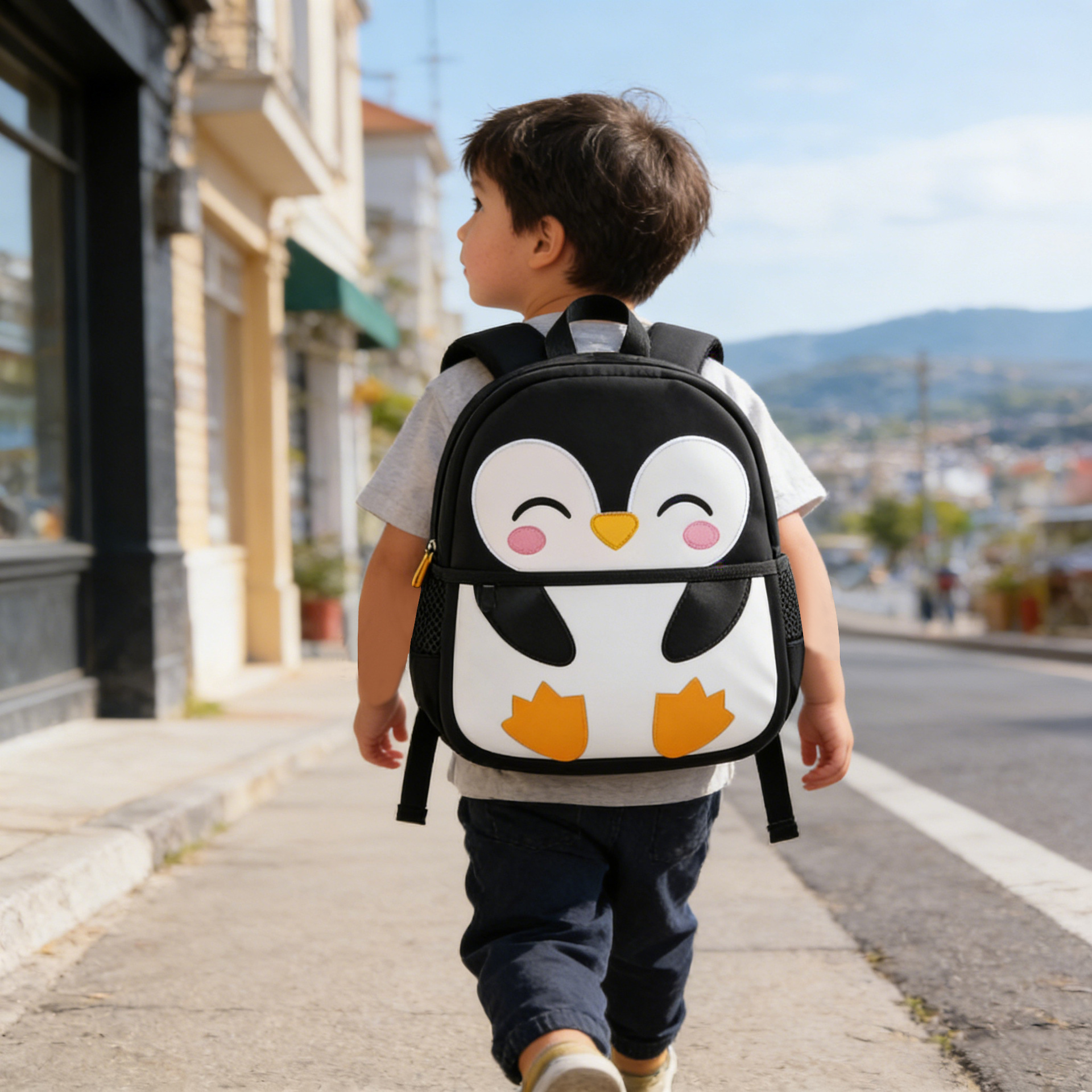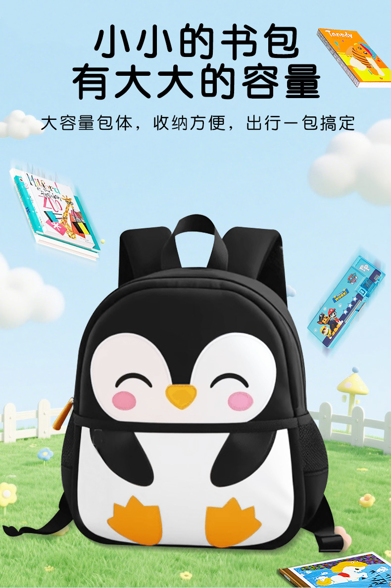 【분실 방지 끈 포함】신형 유아용 작은 펭귄 책가방 남녀 어린이용 다이빙 소재 2-6세 3단 배낭스토어 가기