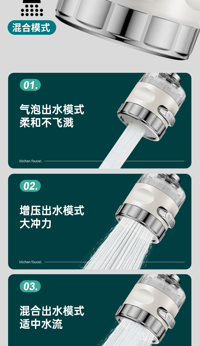 ✅Galley 수도꼭지 익스텐더 스플래시 방지 물 제 3 기어 가압 세척 범용 회전 정수 필터 연결