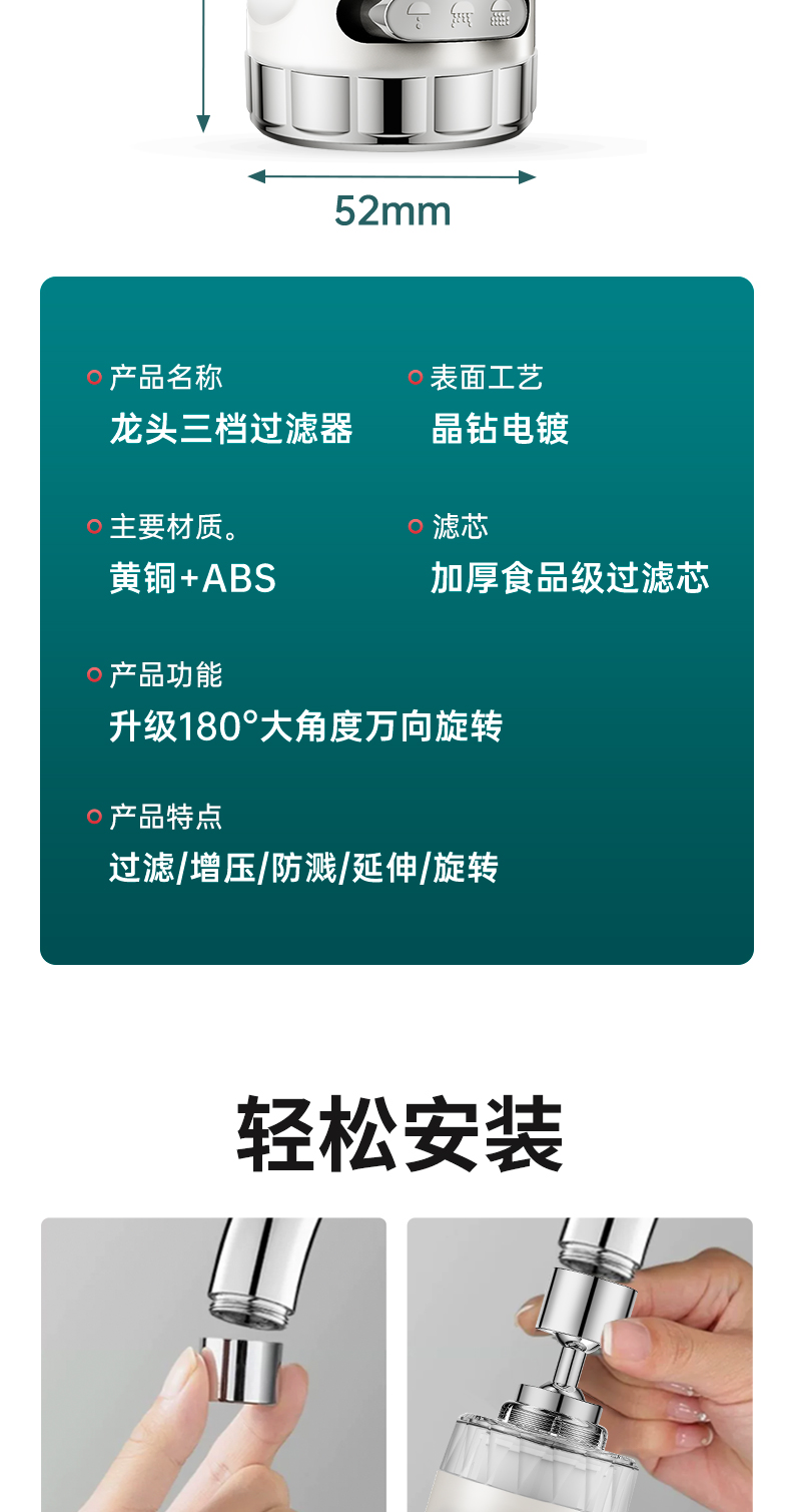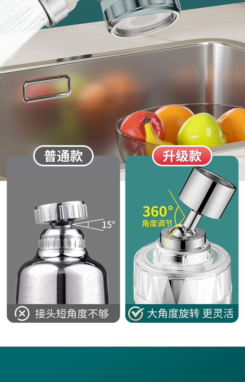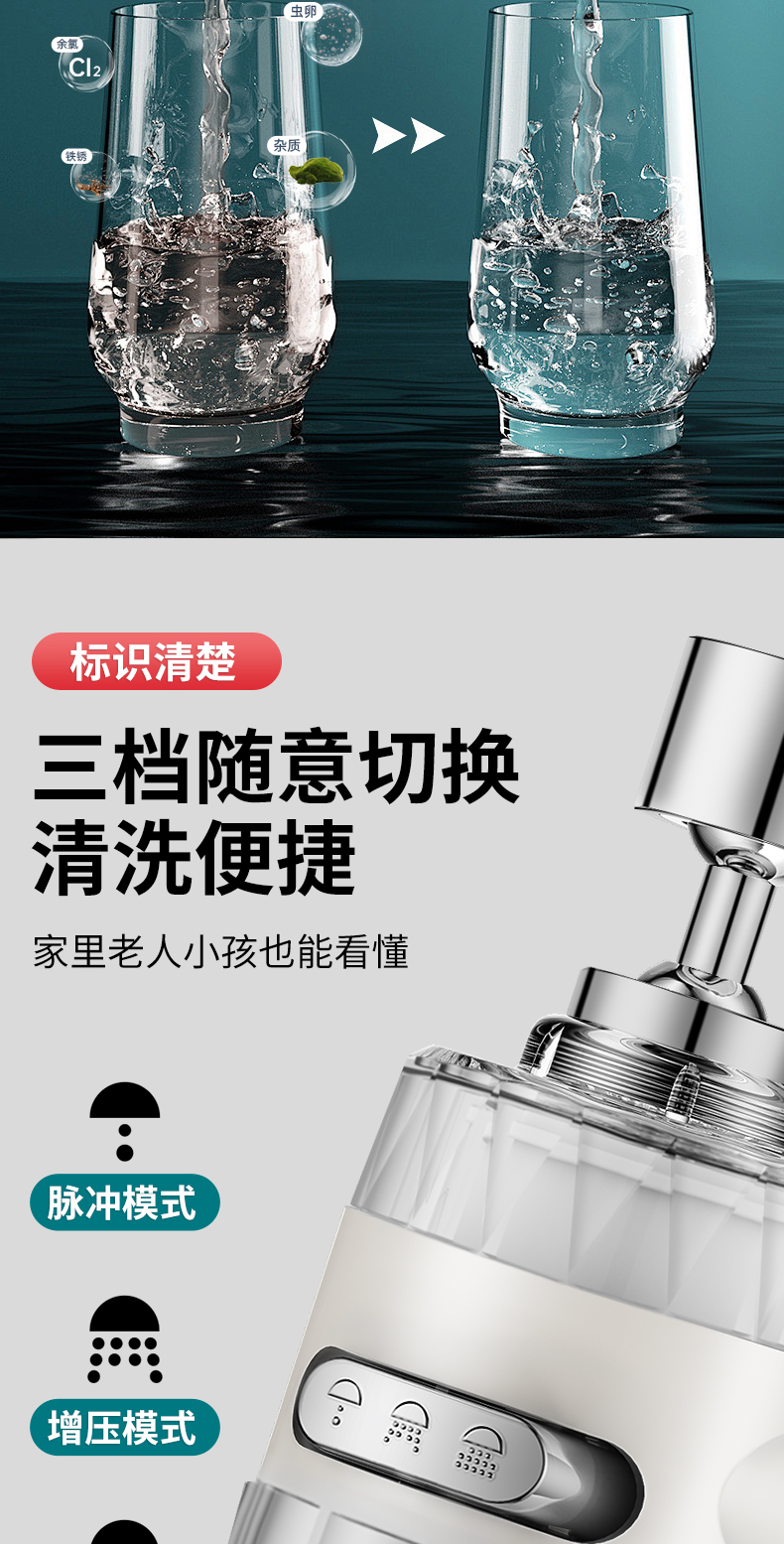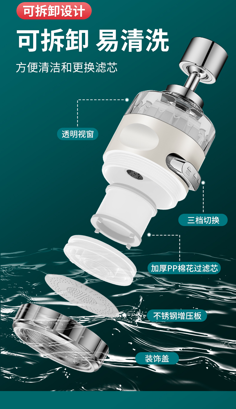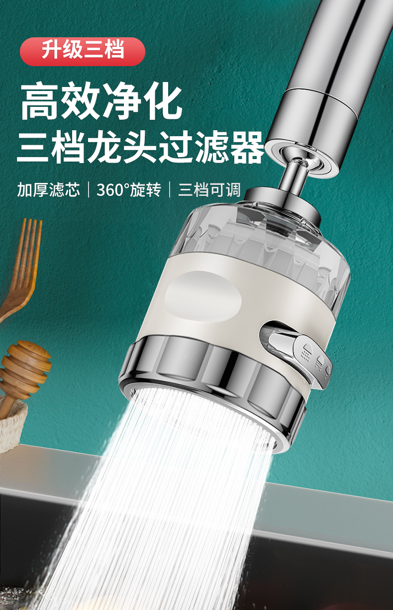 ✅Galley 수도꼭지 익스텐더 스플래시 방지 물 제 3 기어 가압 세척 범용 회전 정수 필터 연결스토어 가기