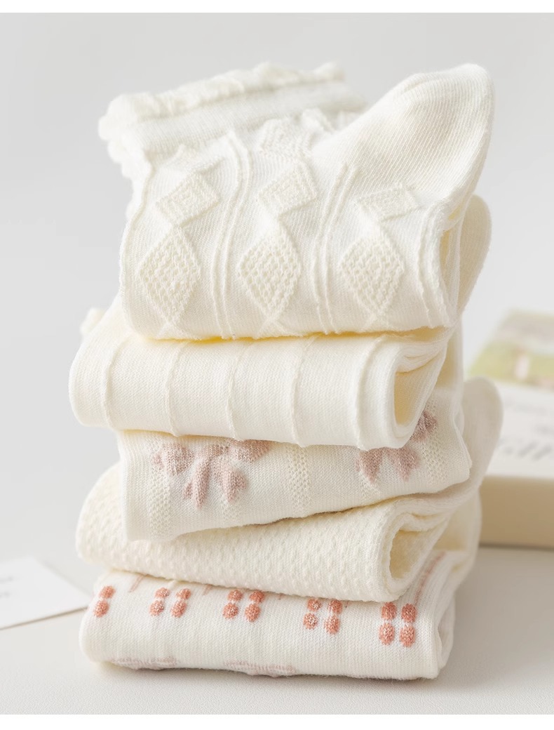 양말 도매 봄과 여름 Zhuji 대학 스타일 버블 입 화이트 양말 학생 일본 달콤한 캐주얼 코튼 양말