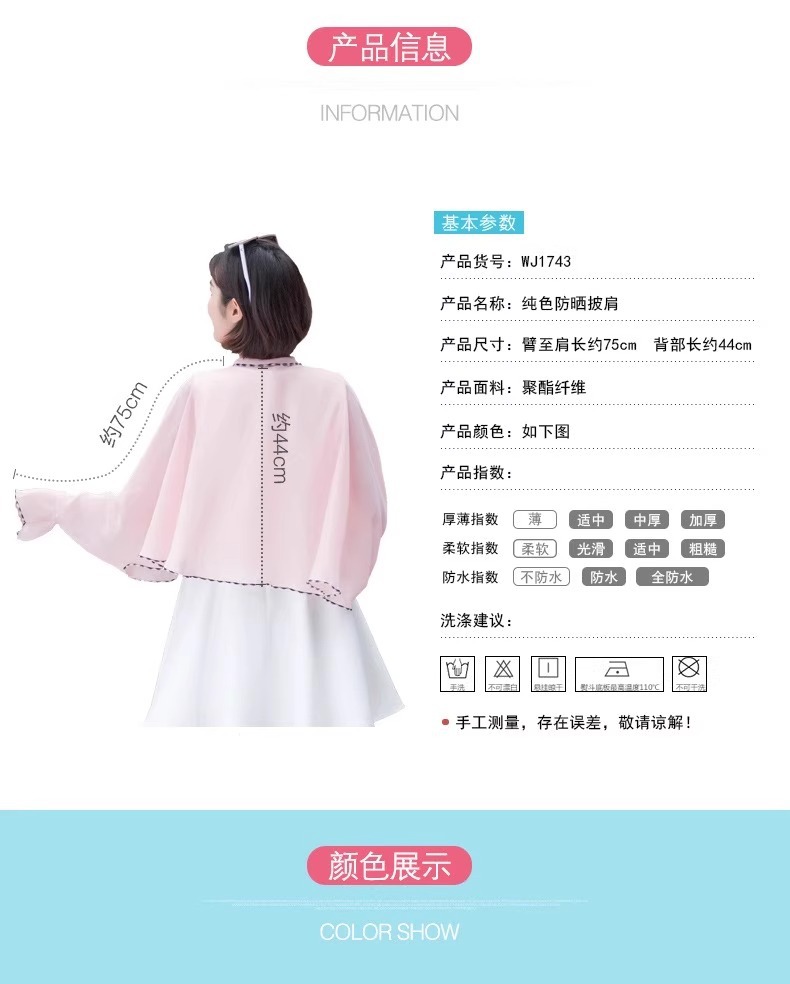 • 자외선 차단 숄 - 라이트 핑크 - 레이스업 스타일 - 1개