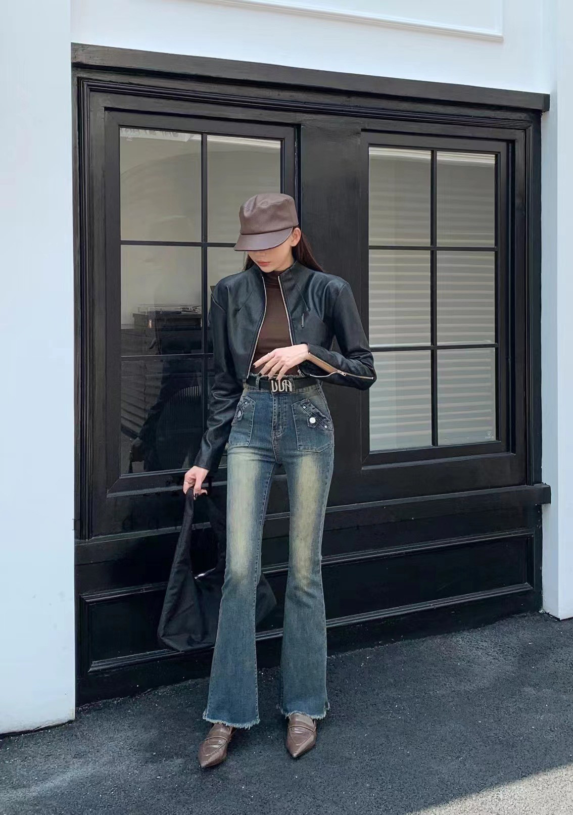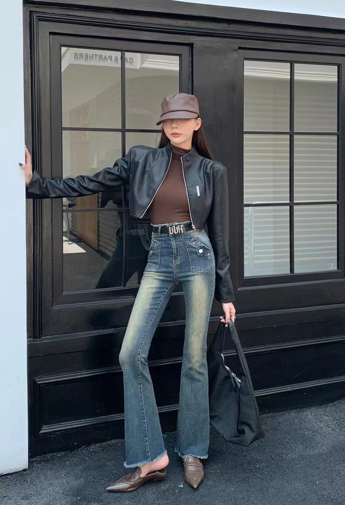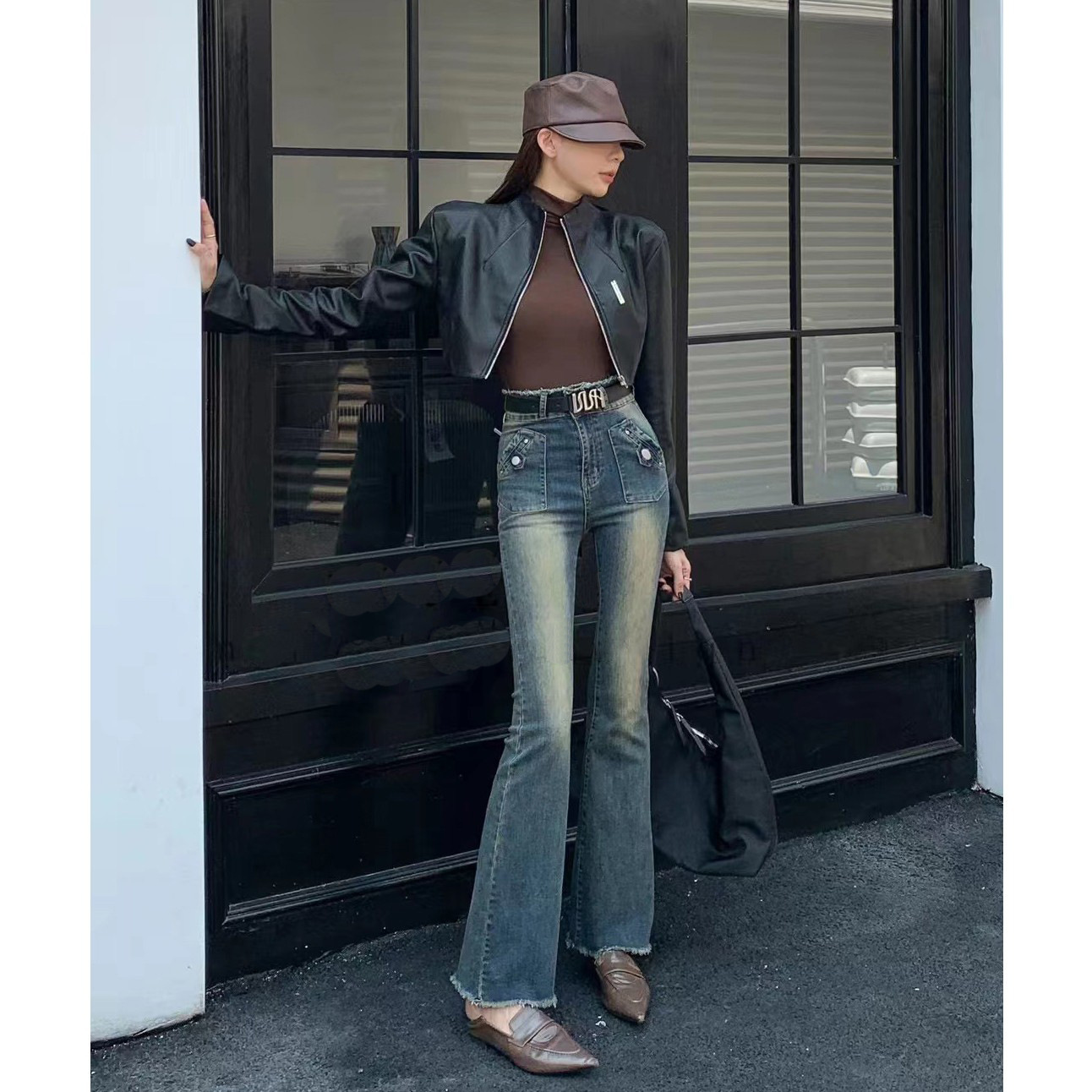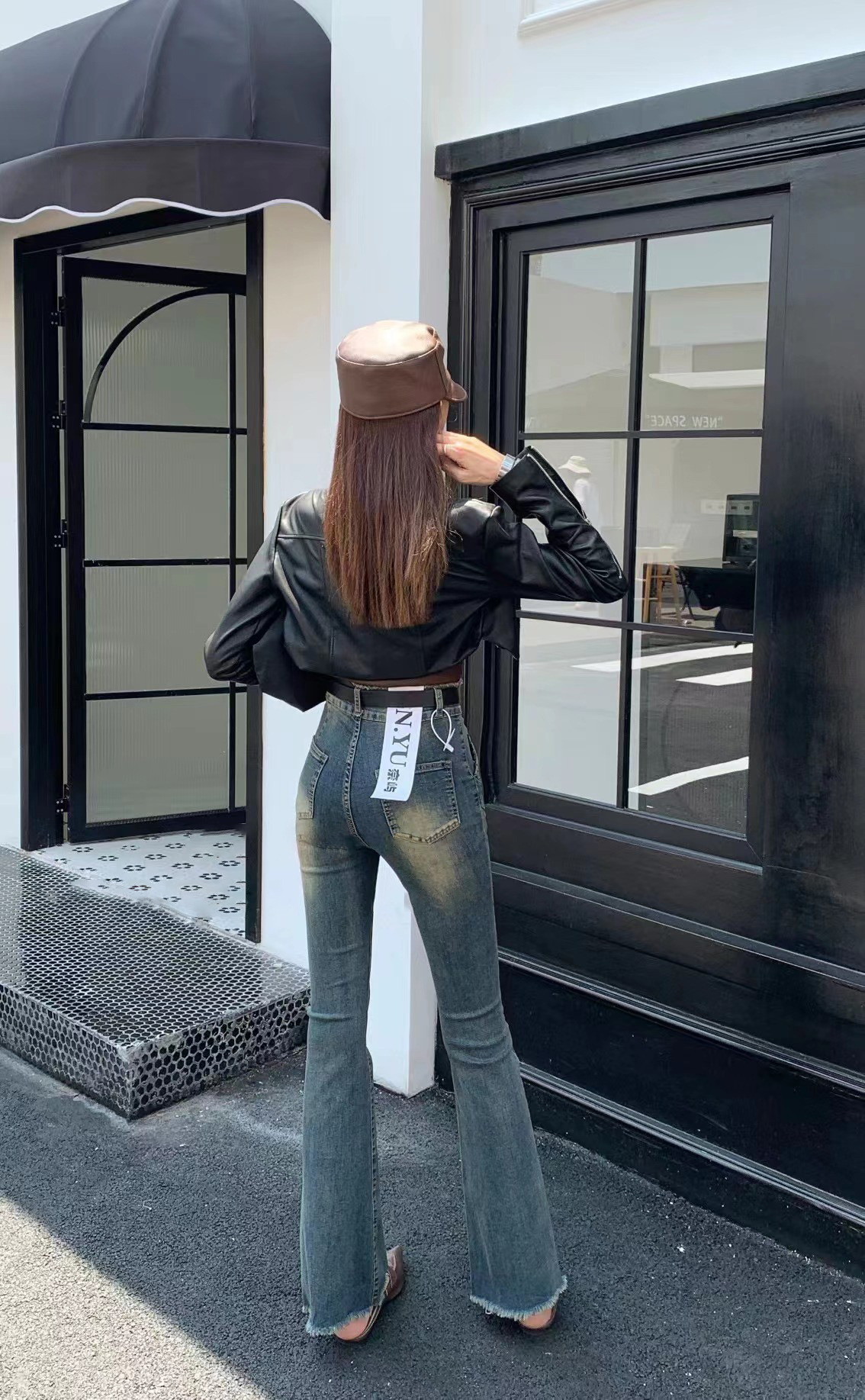 하이 스트리트 스타일 빈티지 그라인드 화이트 청바지 여성 가을 2023 루즈 하이 웨이스트 슬림 핏 스트레치 슬림 핏 바지스토어 가기