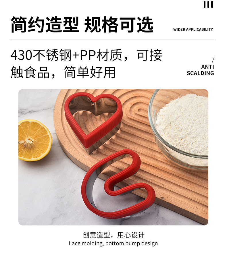 재고 사랑 발렌타인 데이 시리즈 비스킷 금형 하트 U 자형 430 스테인레스 스틸 웨딩 케이크 장식 베이킹 금형