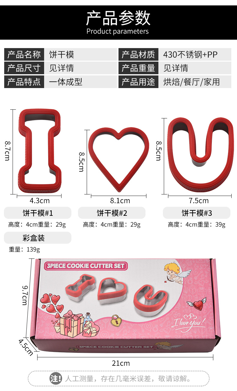 재고 사랑 발렌타인 데이 시리즈 비스킷 금형 하트 U 자형 430 스테인레스 스틸 웨딩 케이크 장식 베이킹 금형스토어 가기