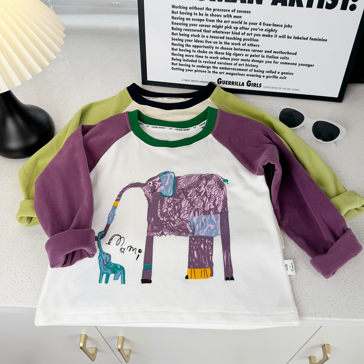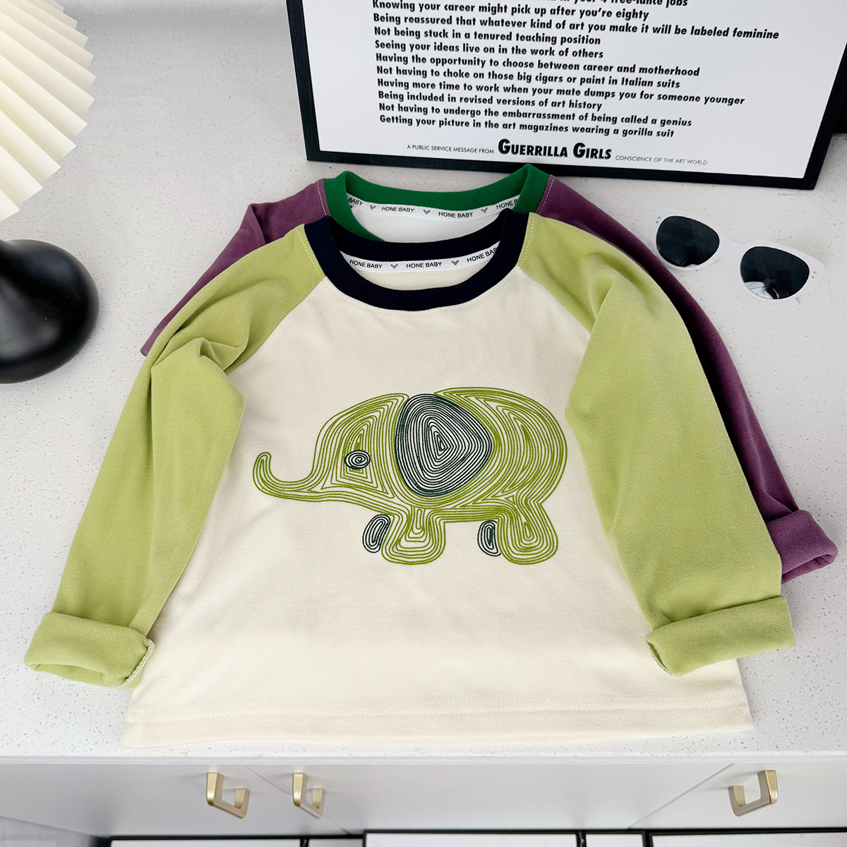 2024 새로운 어린이 벨벳 긴팔 탑 큰 어린이 라글란 소매 서양식 최고 아기 패션 컬러 매칭 티셔츠