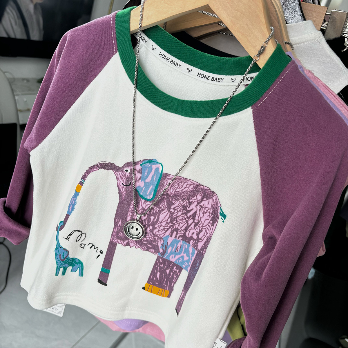 2024 새로운 어린이 벨벳 긴팔 탑 큰 어린이 라글란 소매 서양식 최고 아기 패션 컬러 매칭 티셔츠스토어 가기