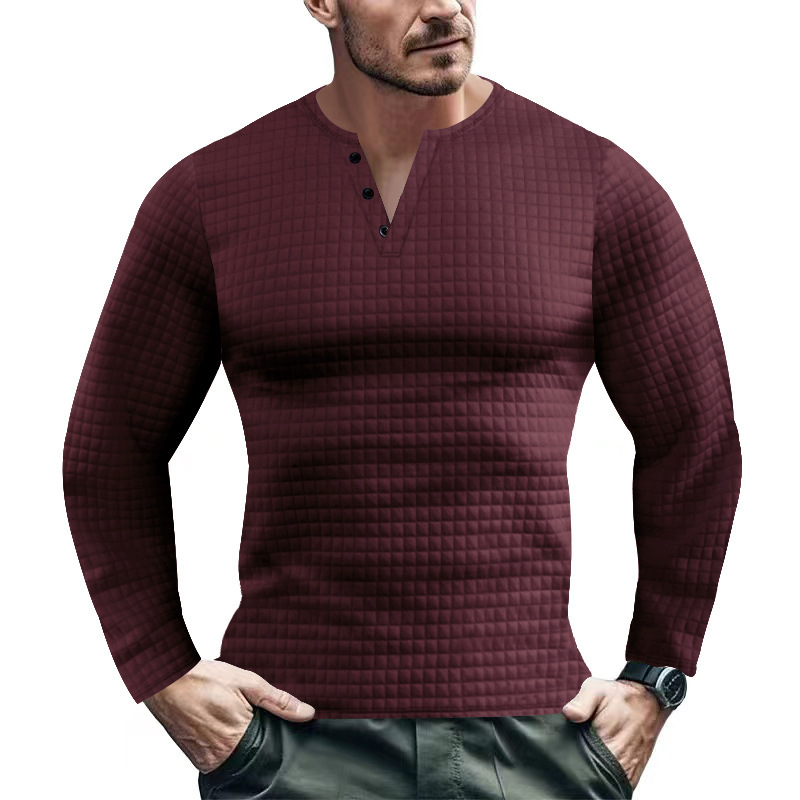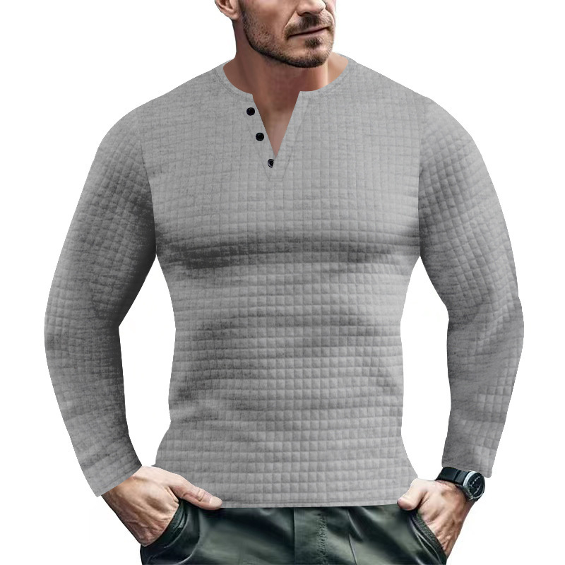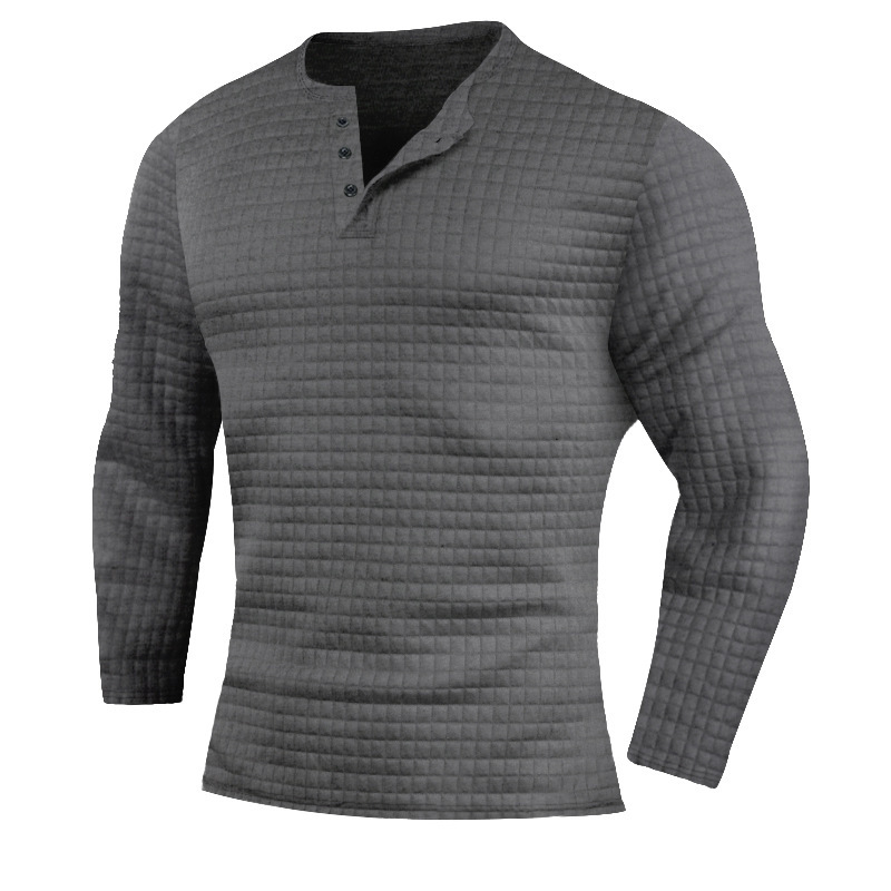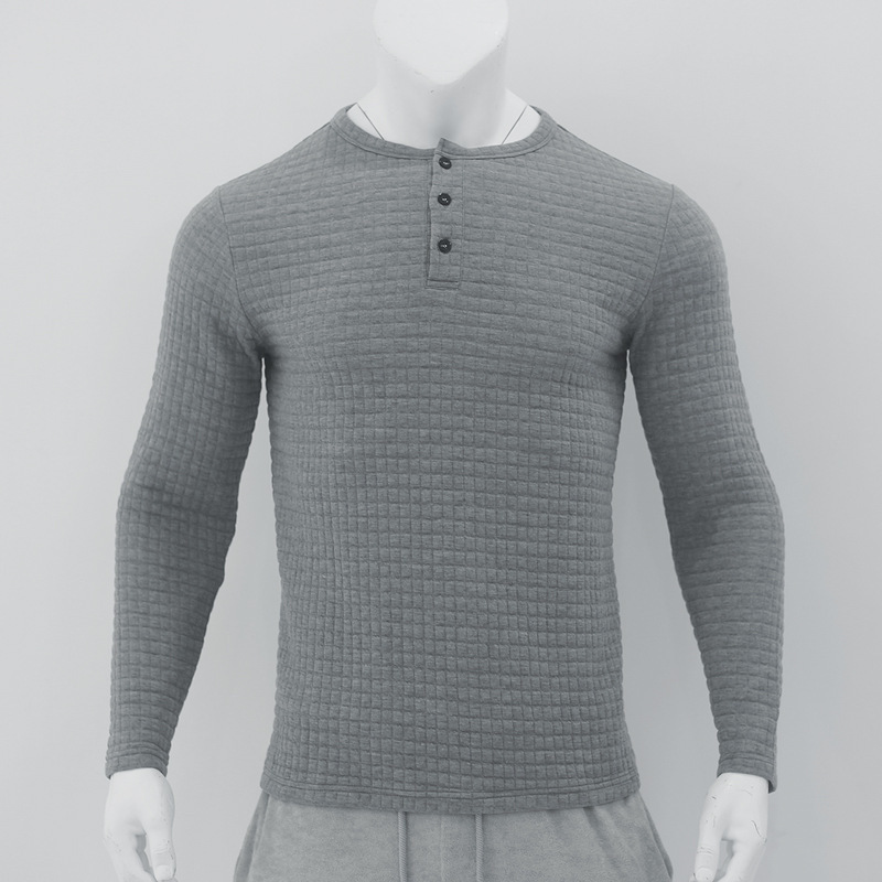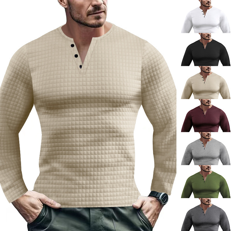 2025 가을과 겨울 국경 작은 광장 스포츠 슬림 핏 통기성 남성 긴팔 티셔츠 유럽과 미국 남성 캐주얼 헨리 셔츠