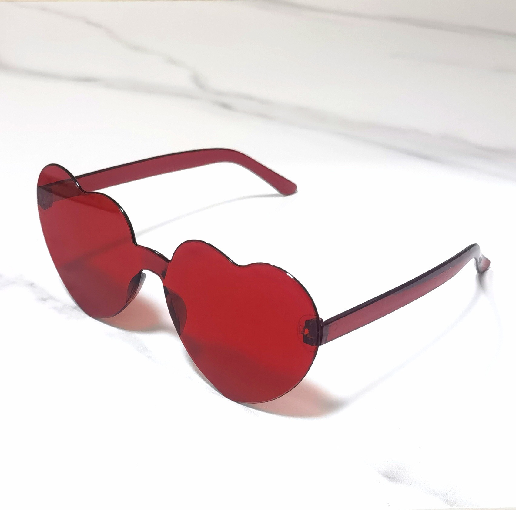 얇은 복숭아 하트 파티 선글라스 러브 선글라스 젤리 컬러 무테 하트 모양의 일체형 안경 캔디 컬러 선글라스
