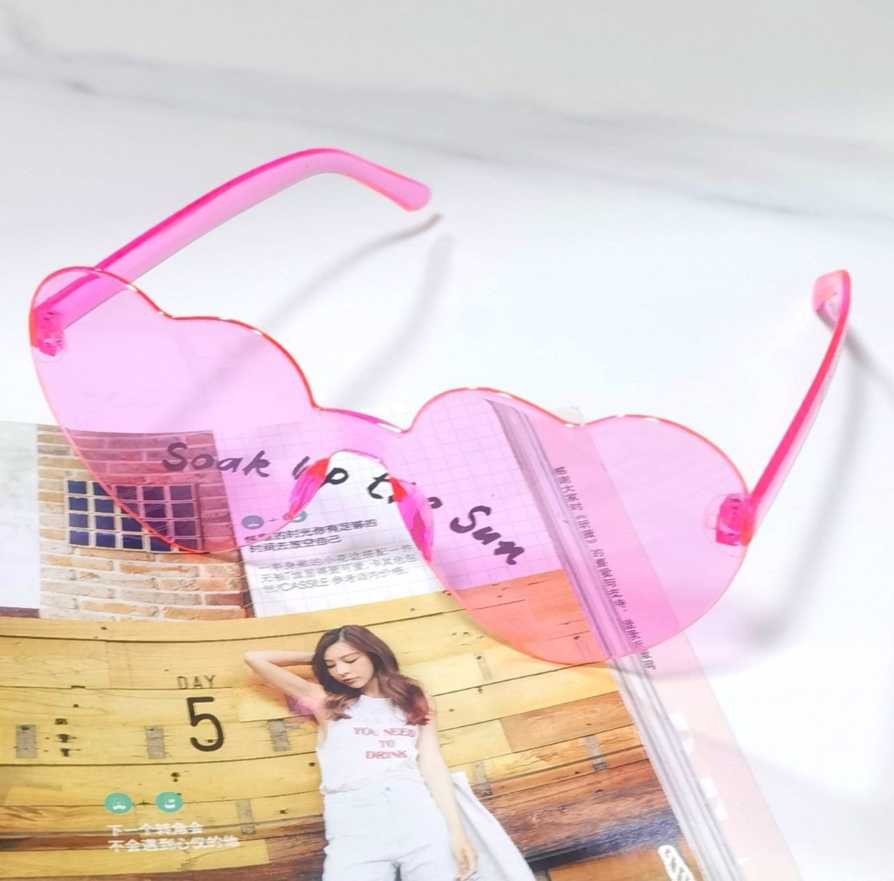 얇은 복숭아 하트 파티 선글라스 러브 선글라스 젤리 컬러 무테 하트 모양의 일체형 안경 캔디 컬러 선글라스스토어 가기