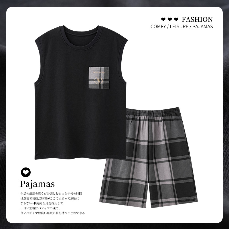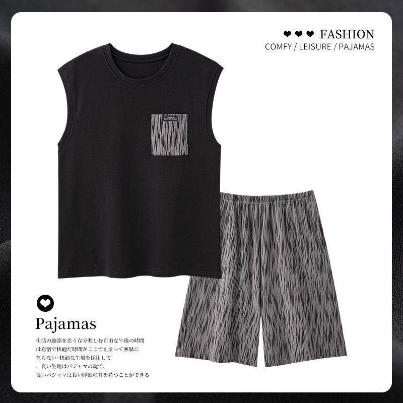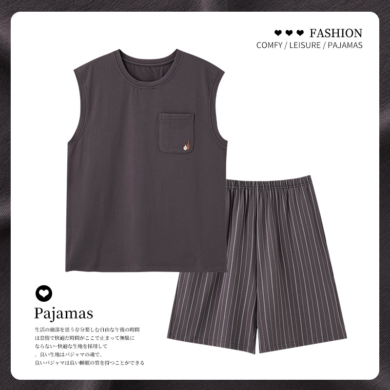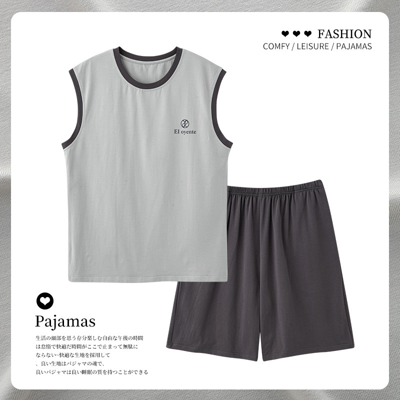민소매 조끼 여름 남성 잠옷 심플 솔리드 컬러 홈웨어 세트 다용도 넉넉한 루즈 반바지 쿨스토어 가기