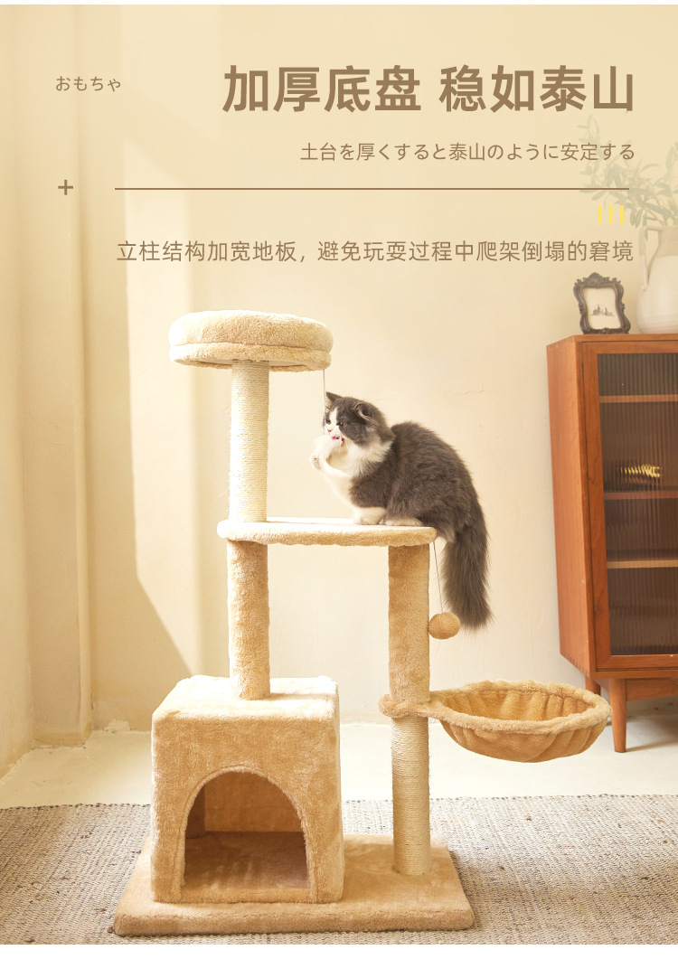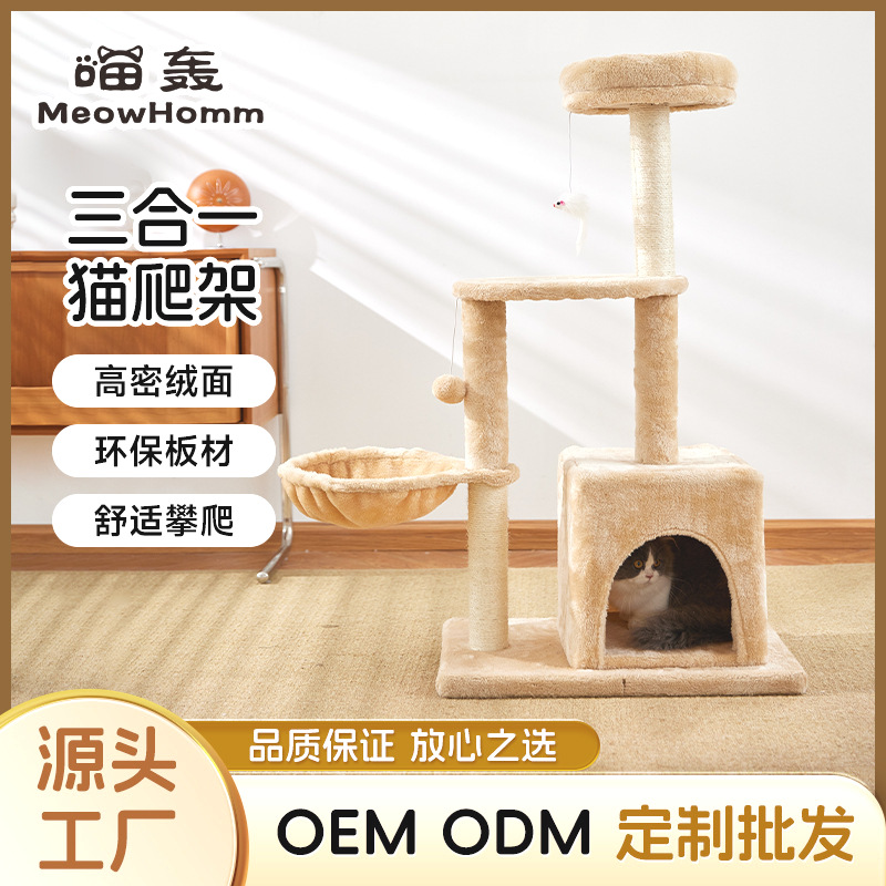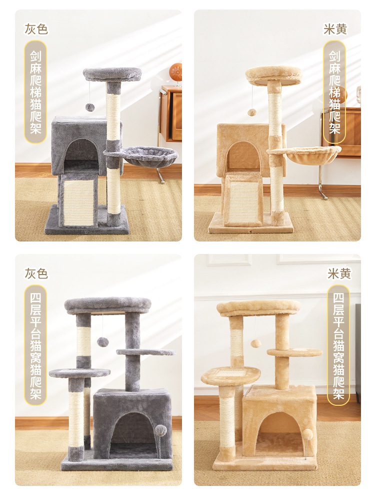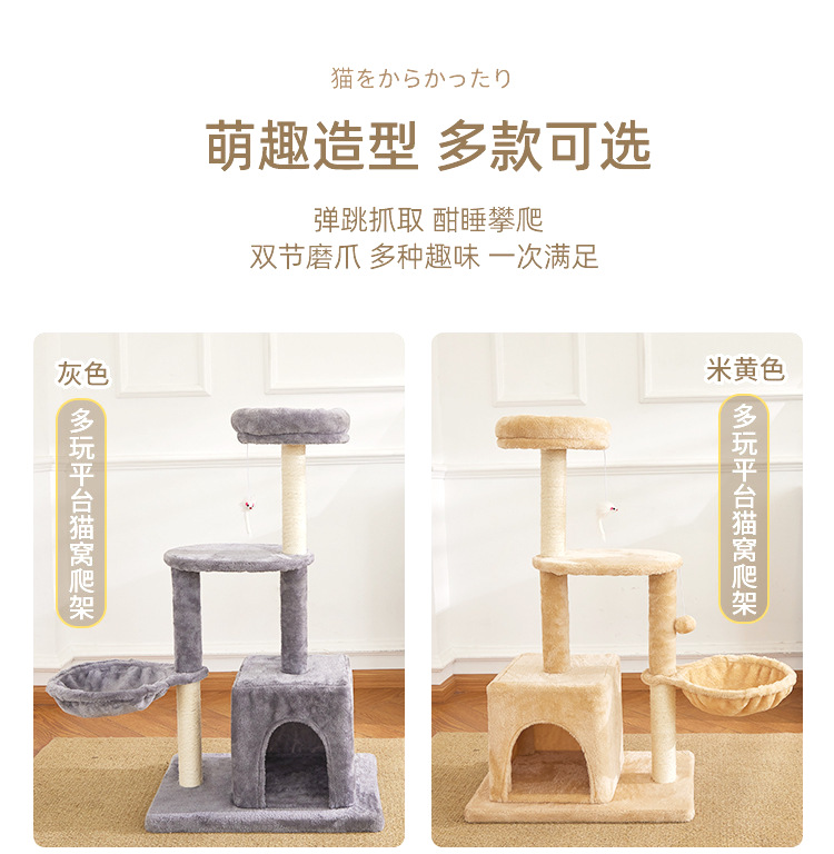 定制批发毛绒布猫爬架多层跳台猫抓架猫窝自嗨一体木质猫爬柱