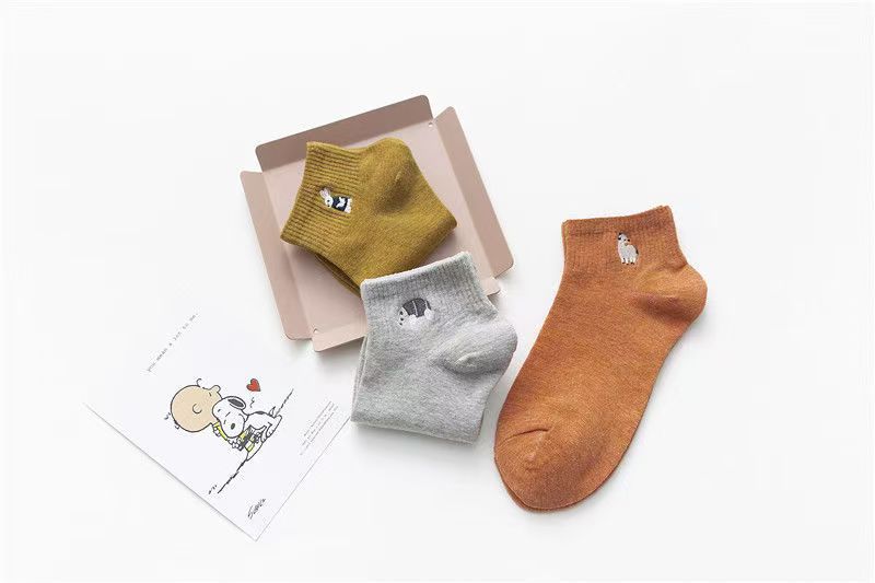 양말 여성 짧은 양말 봄 가을 얇은 면 한국 Ins 유행 귀여운 일본 자수 만화 양말 학술 스타일