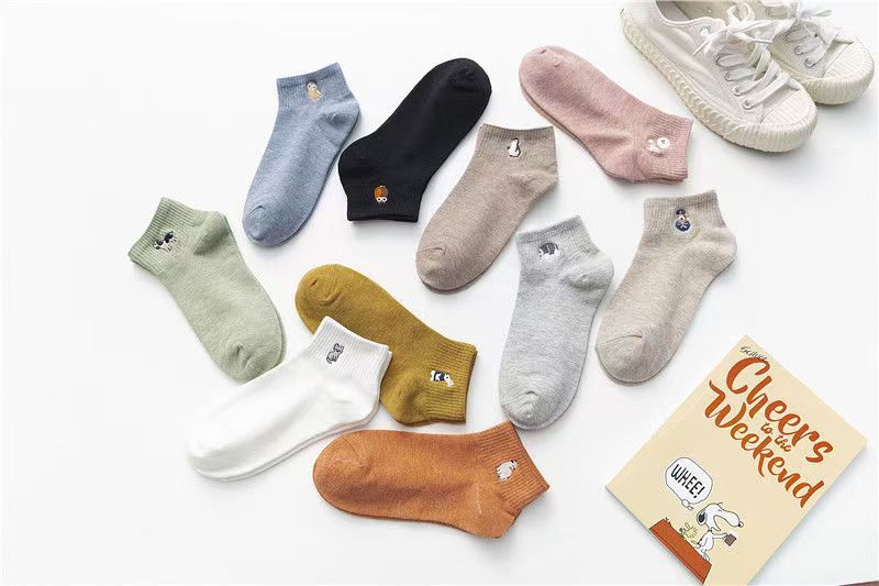 양말 여성 짧은 양말 봄 가을 얇은 면 한국 Ins 유행 귀여운 일본 자수 만화 양말 학술 스타일스토어 가기
