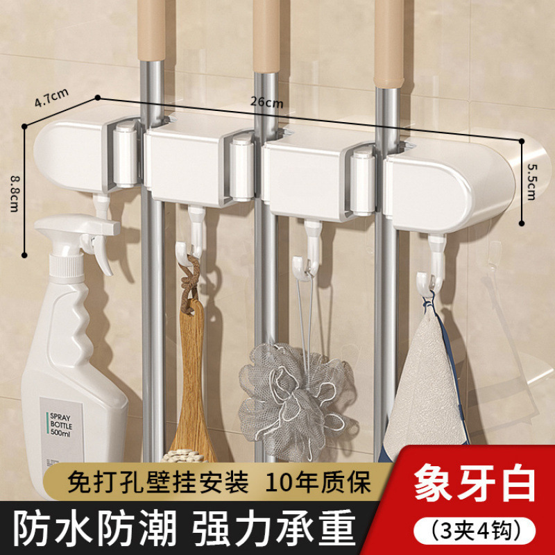 흡입컵 걸레 벽걸이 클립 펀치 없는 벽걸이형 빗자루 걸레 가정용 욕실 욕실 강력 고정 랙 후크스토어 가기