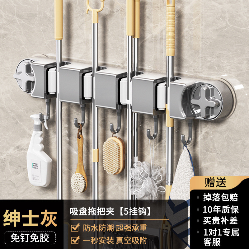 • 업그레이드된 흡착컵 모델 [우아한 회색-1팩] 걸레 클립丨클립 4개 후크 5개