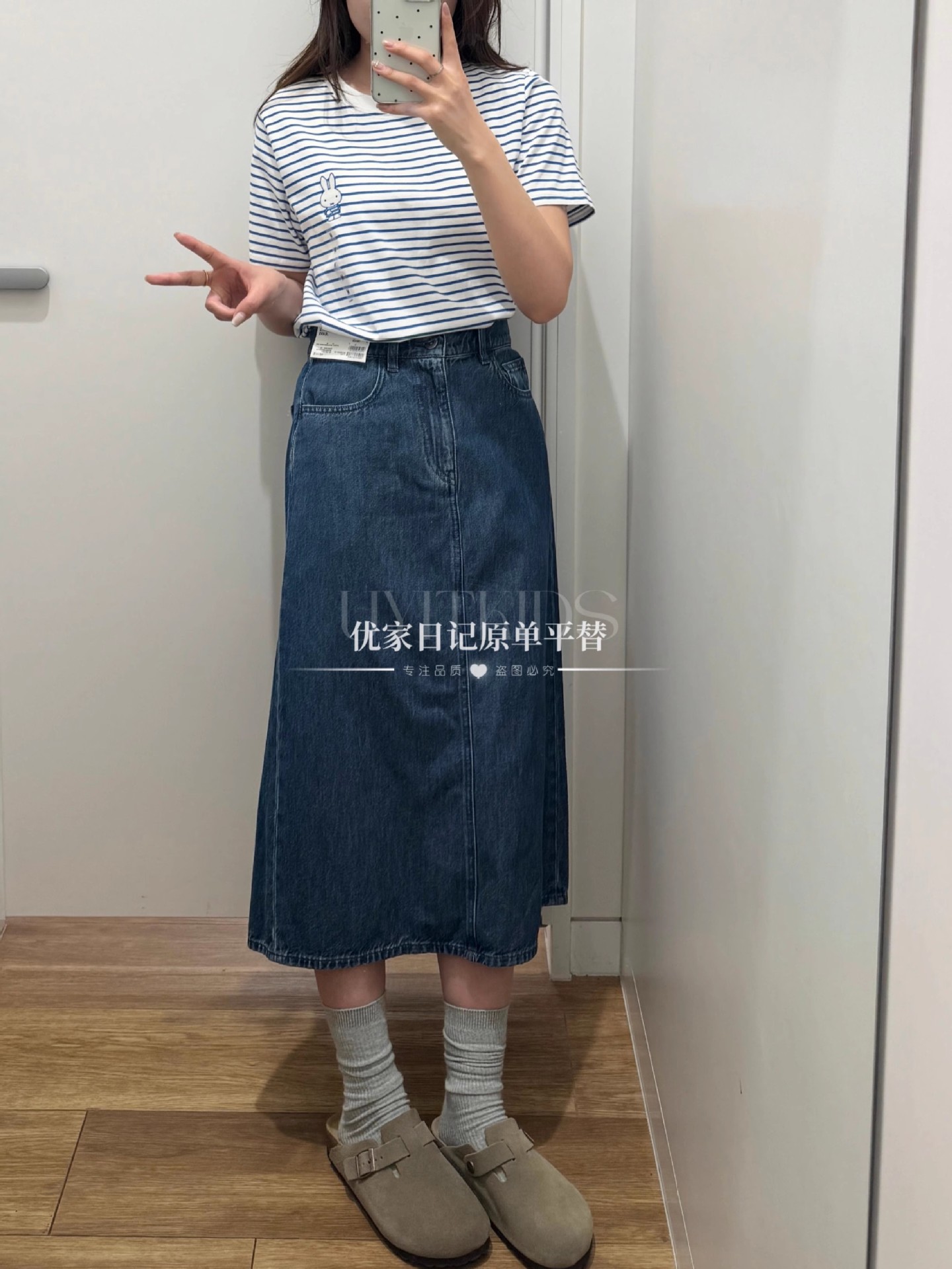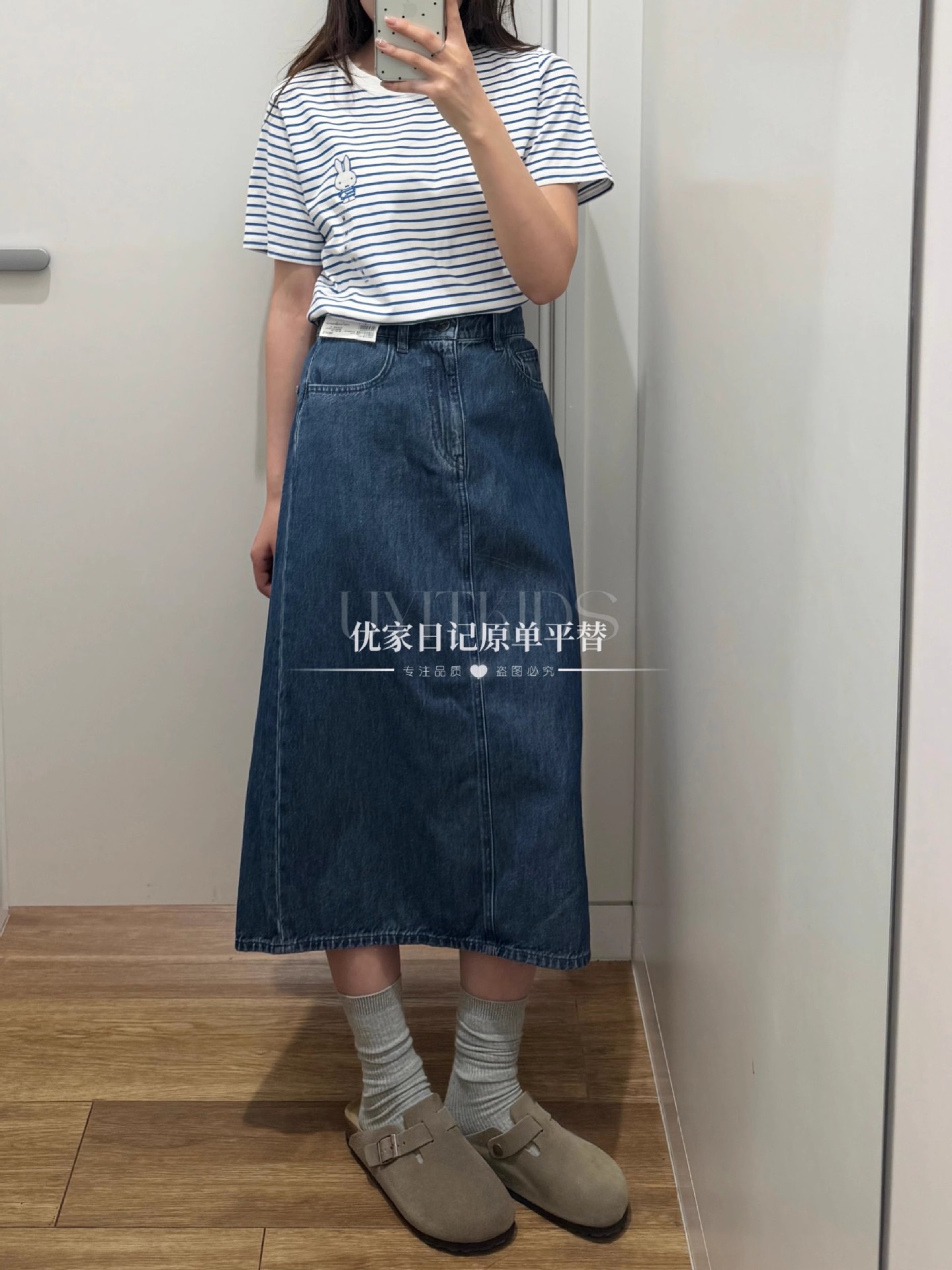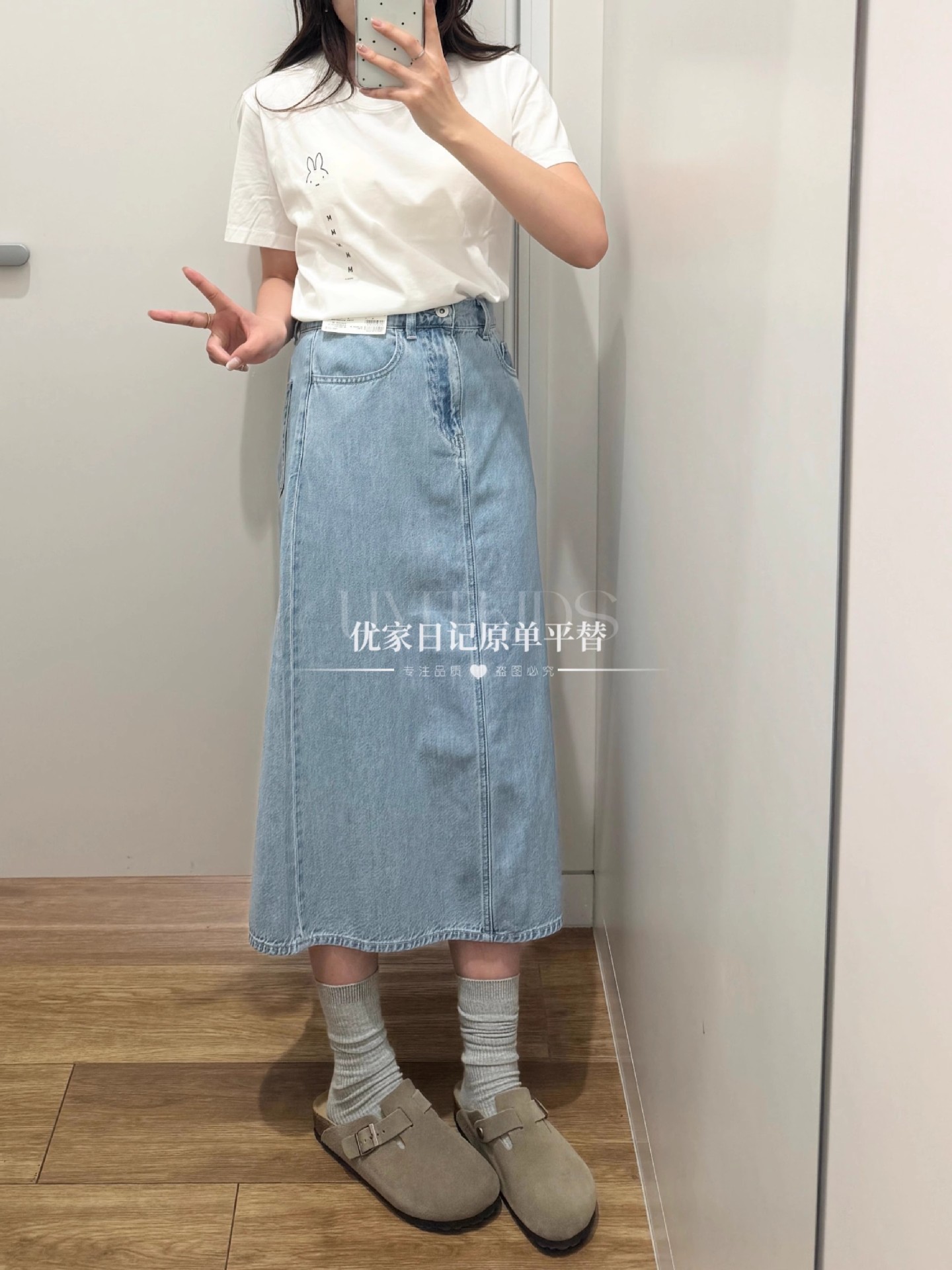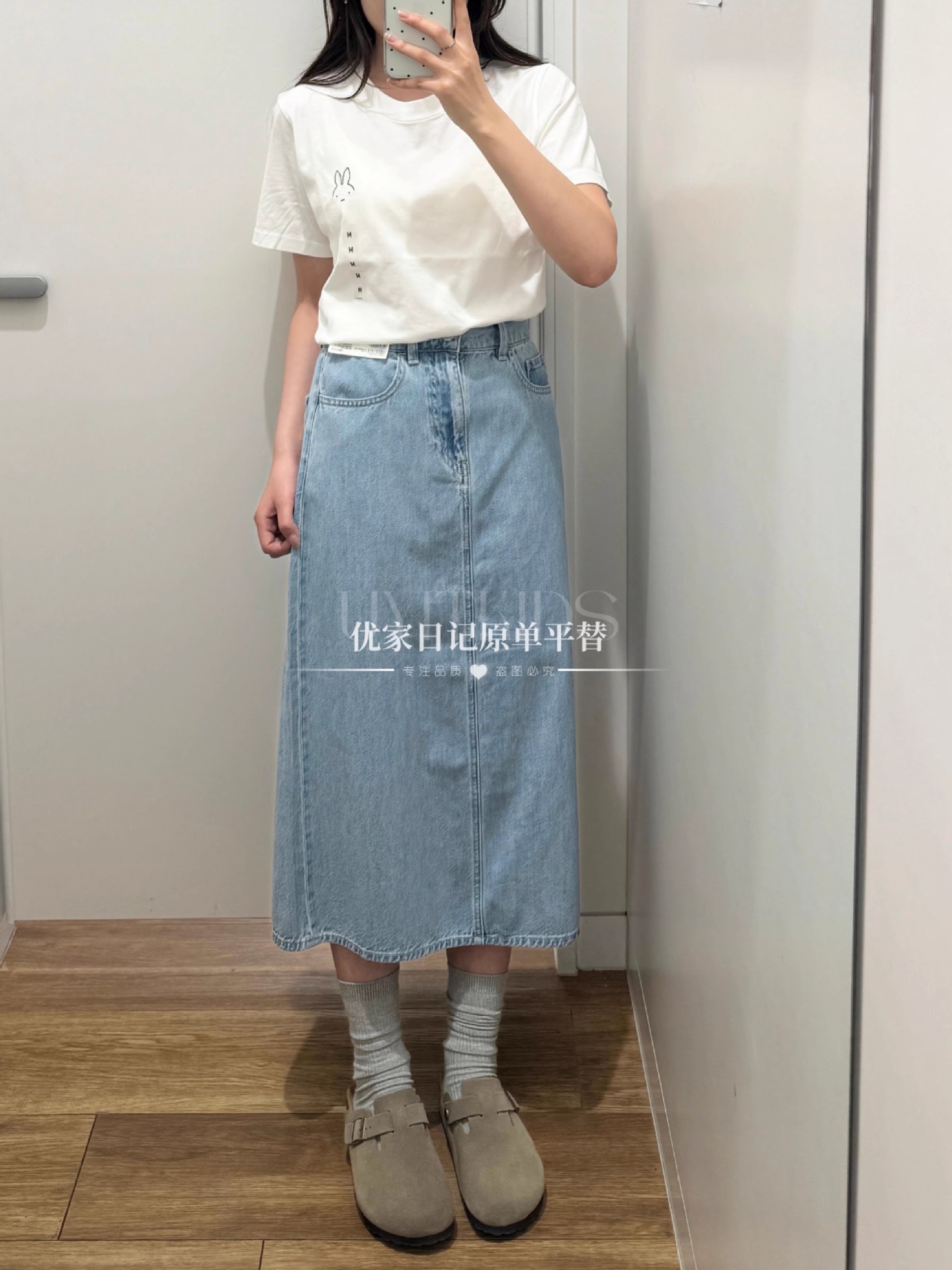 Youjia Diary Ujia 여성 드레이프 데님 스커트 슬림 스커트 워싱 제품 하프 슬릿 스커트 475832스토어 가기