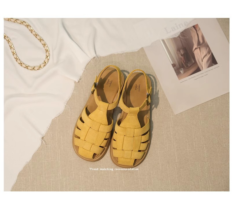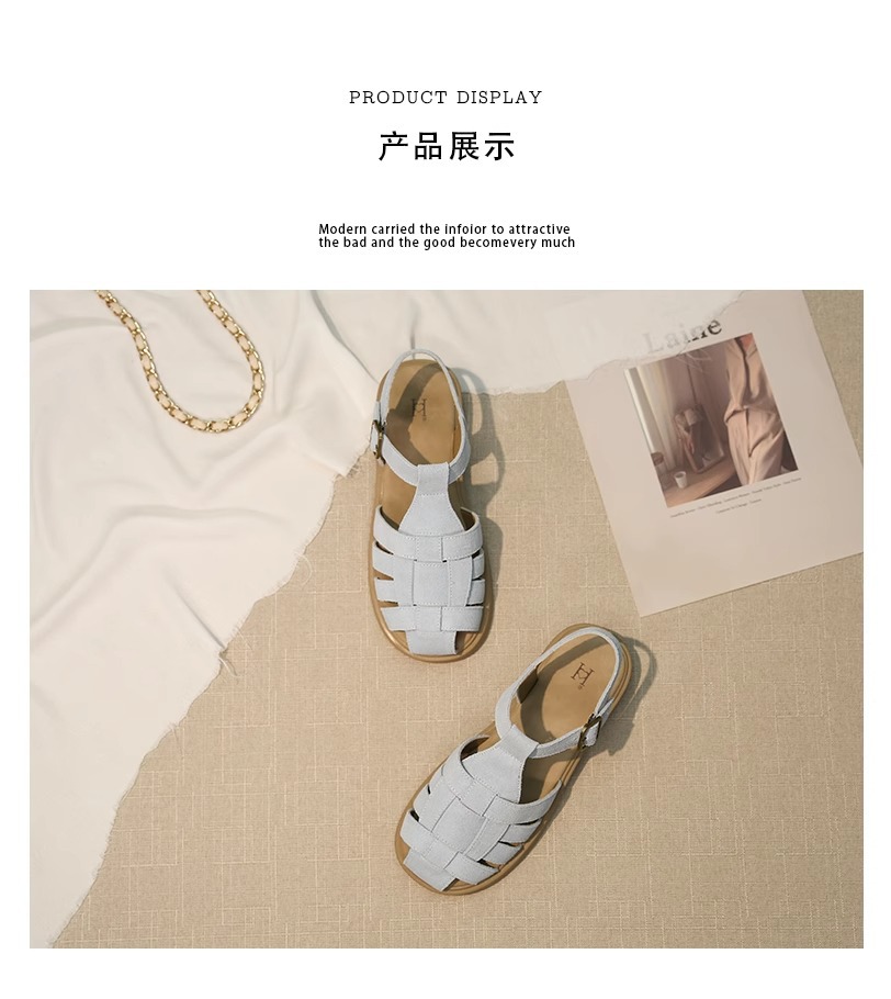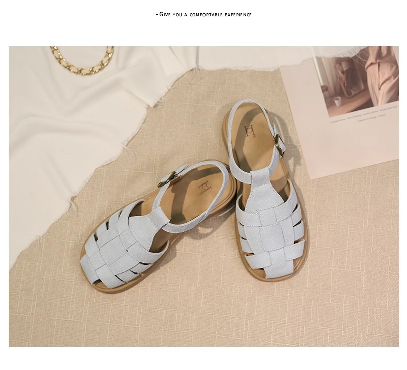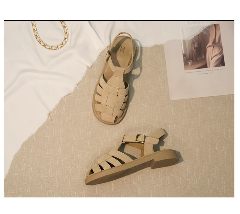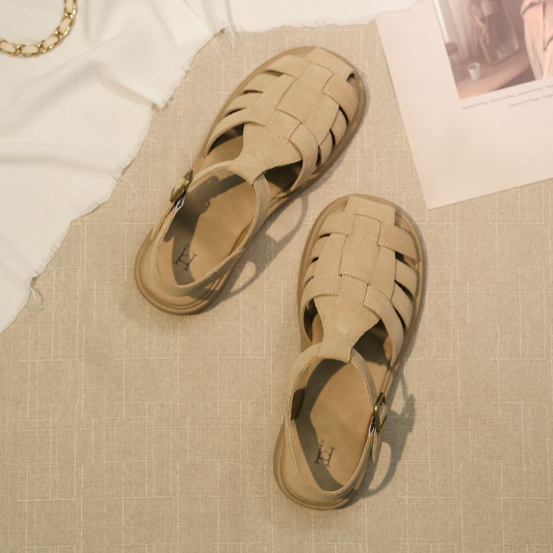 로마 샌들 여성 2025 년 여름 통기성 정품 가죽 의류 빈티지 빈 플랫 피트 치마 비치 슈즈에 지치지 않음