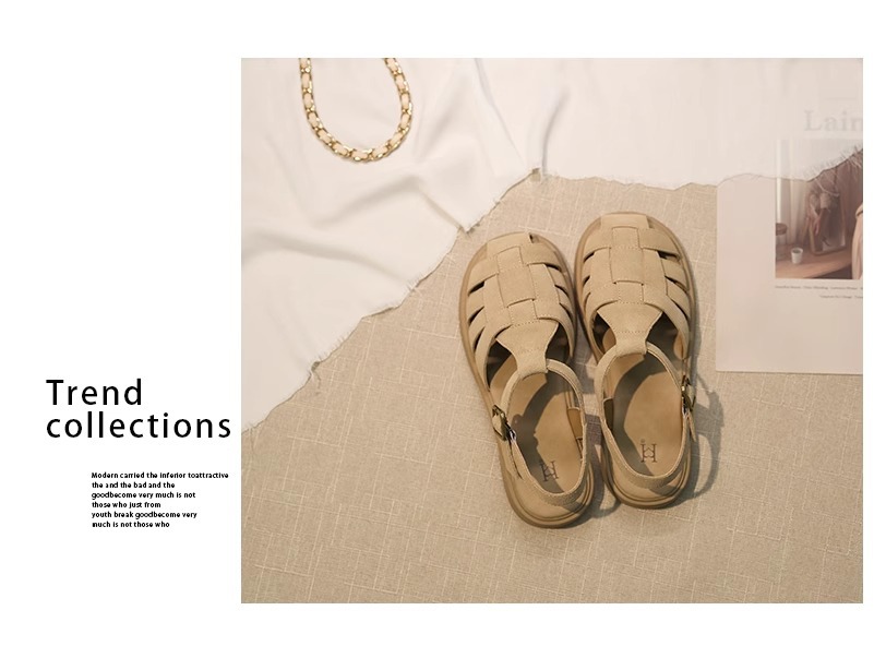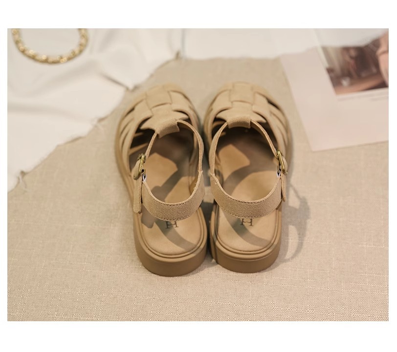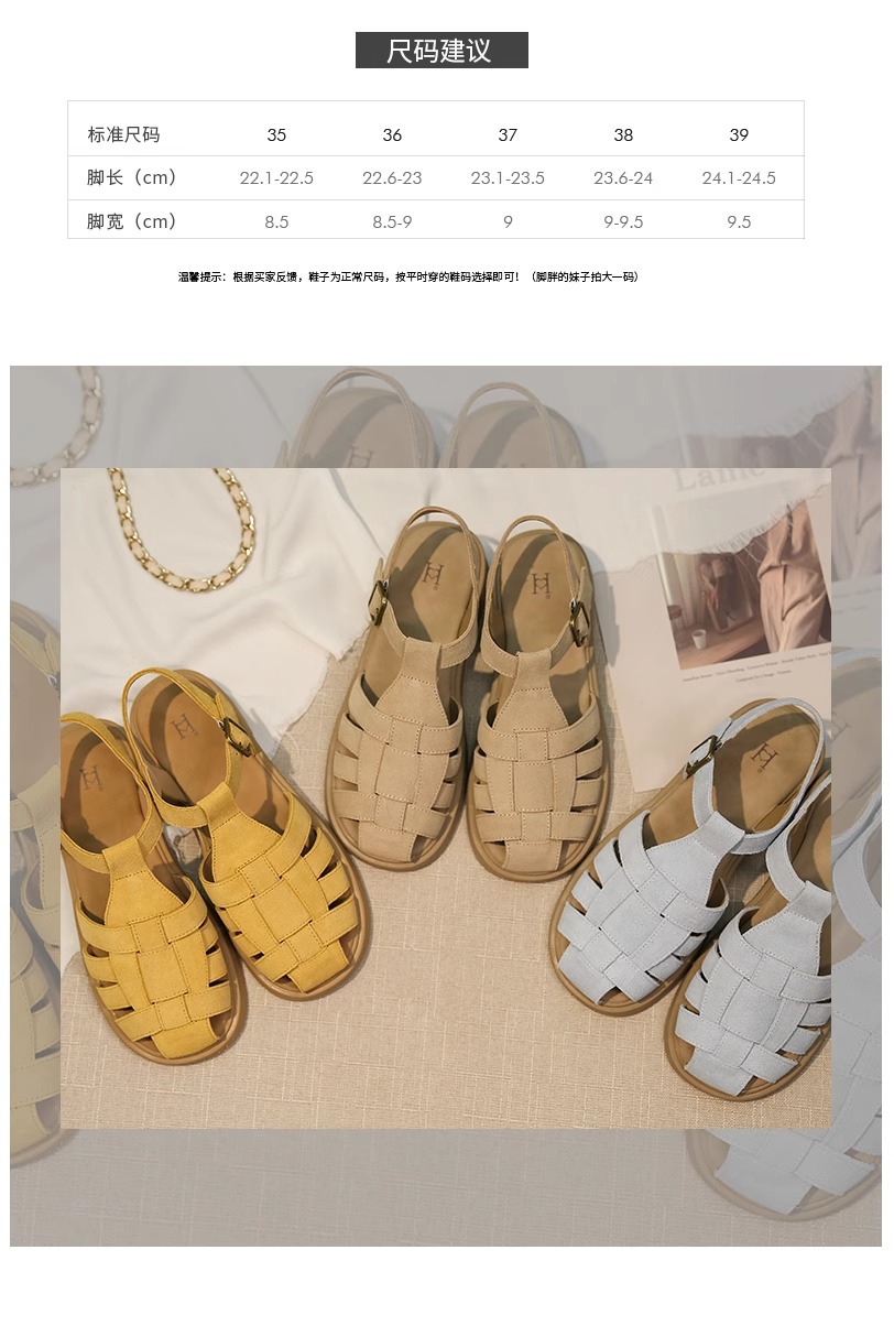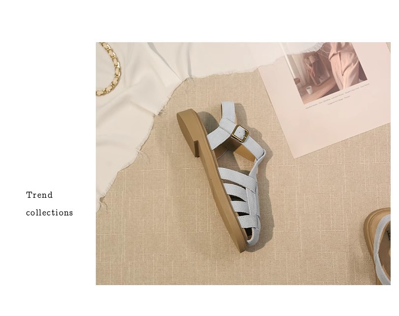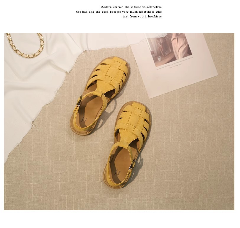 로마 샌들 여성 2025 년 여름 통기성 정품 가죽 의류 빈티지 빈 플랫 피트 치마 비치 슈즈에 지치지 않음