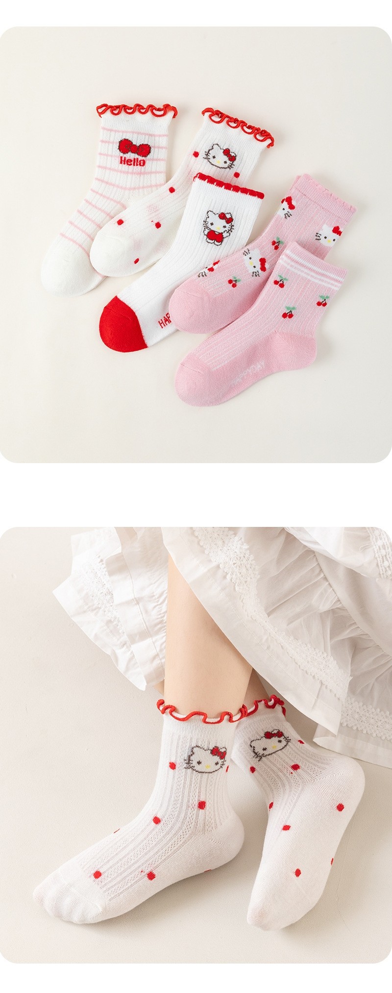 헬로 키티 소녀 양말 여름 얇은 가을 여름 코튼 양말 통기성 메쉬 양말 소녀 여름 어린이 미드 튜브 양말