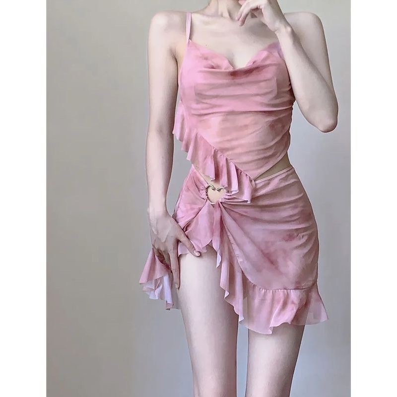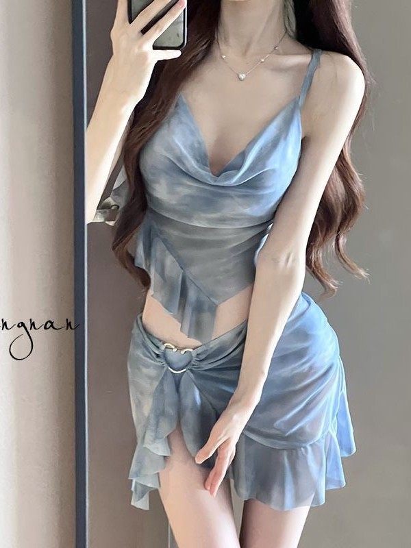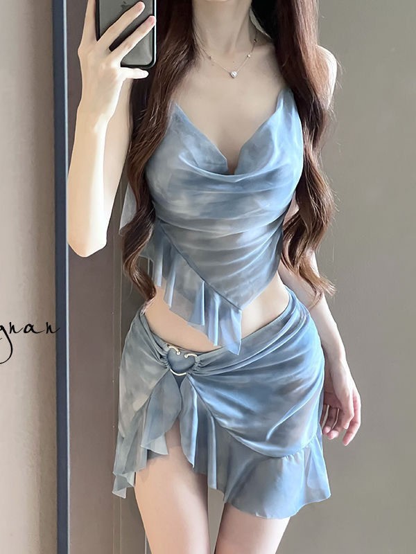 수영복 여성 스플릿 3 피스 거즈 섹시 슬리밍 배꼽을 덮는 순수한 욕망 하이 레벨 스타일 보수적 인 비키니 수영복스토어 가기