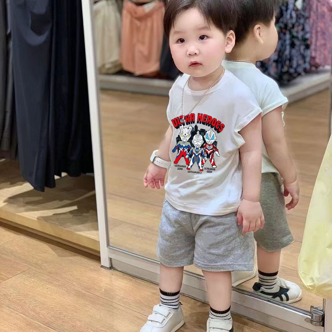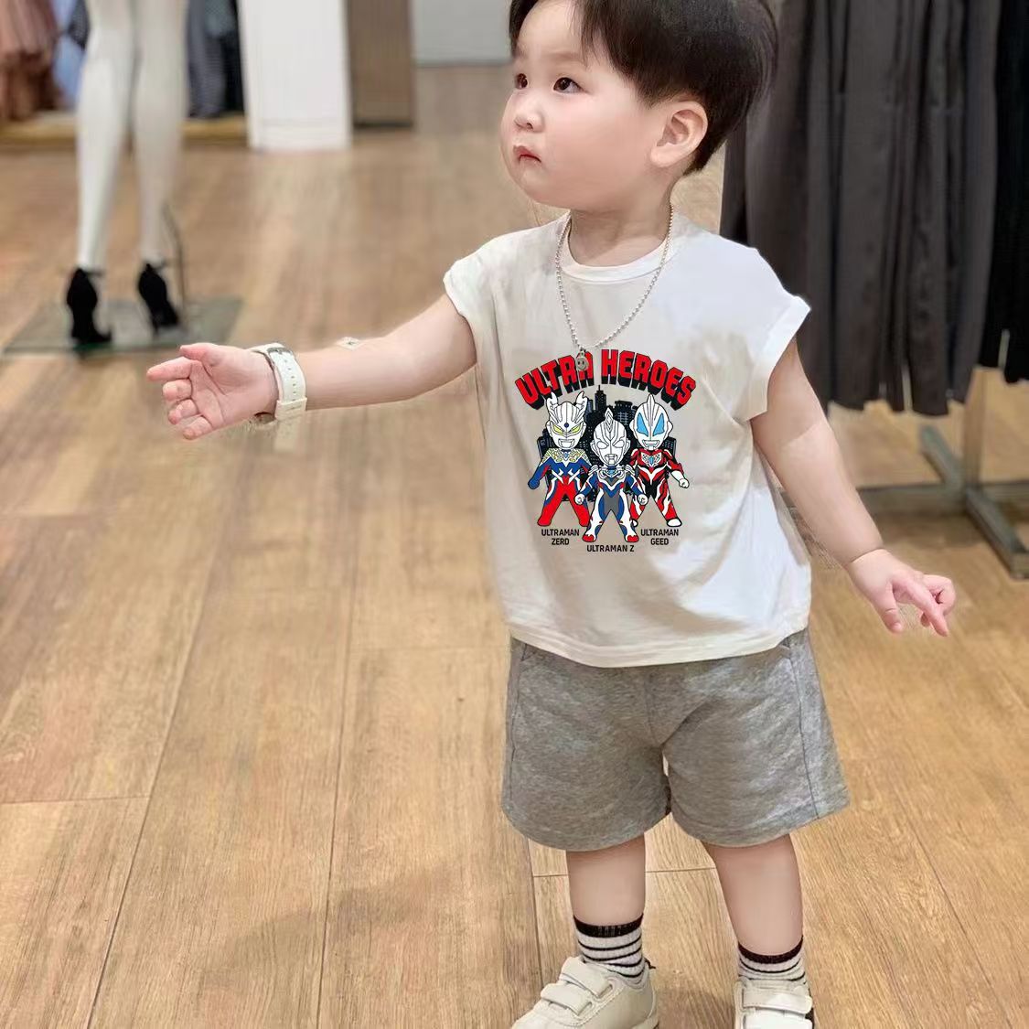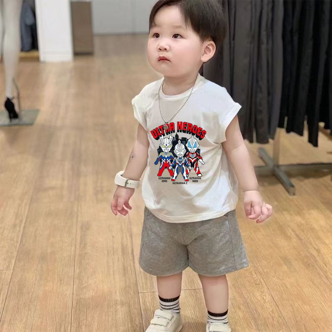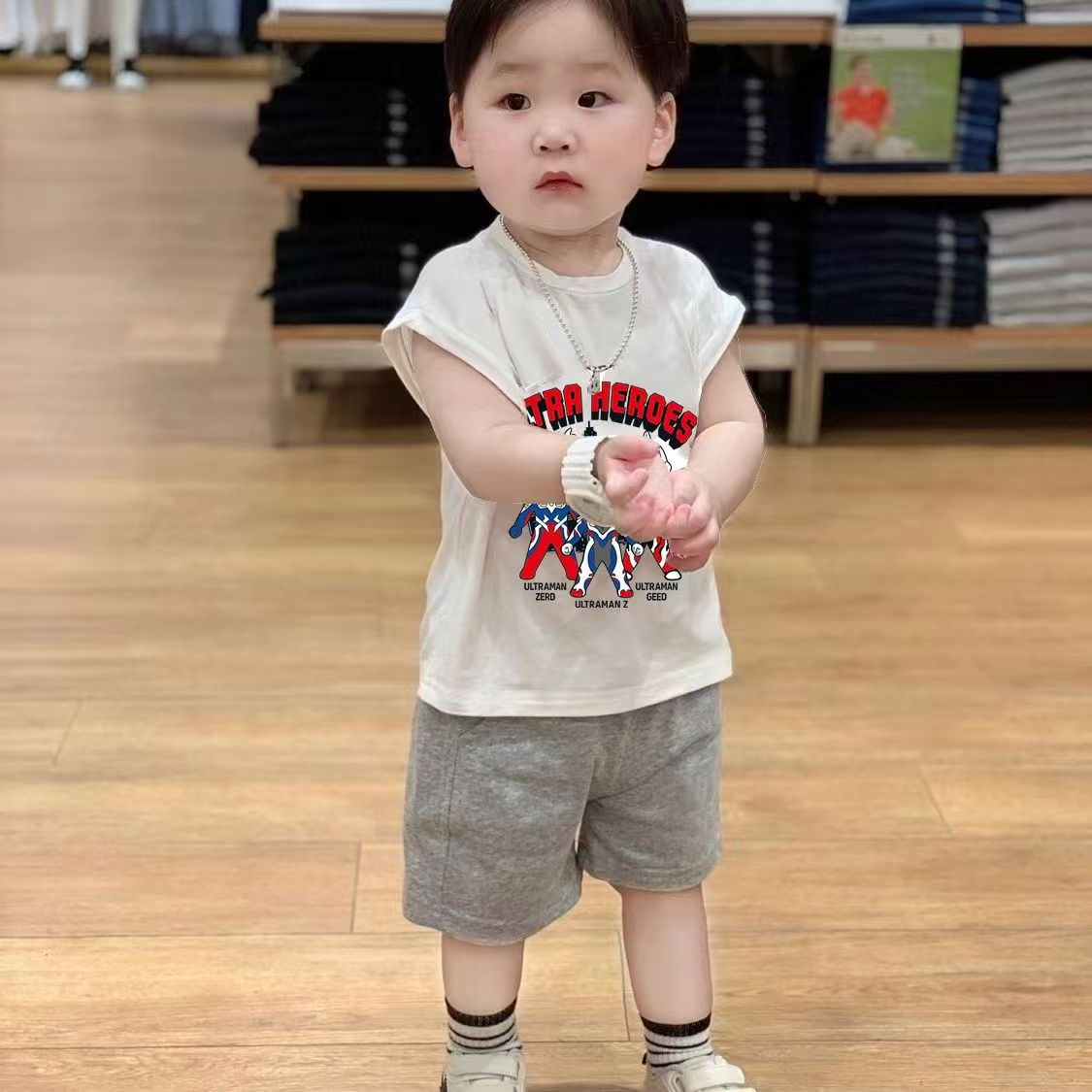 소년 여름 민소매 울트라 맨 조끼 반바지 정장 2025 새로운 여름 옷 아기 어린이 투피스 양복스토어 가기